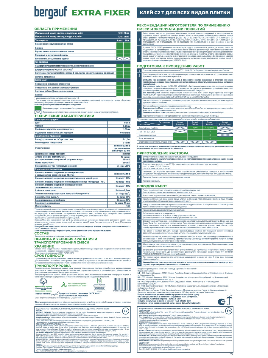 Клей плиточный 25,0кг BERGAUF Extra Fixer