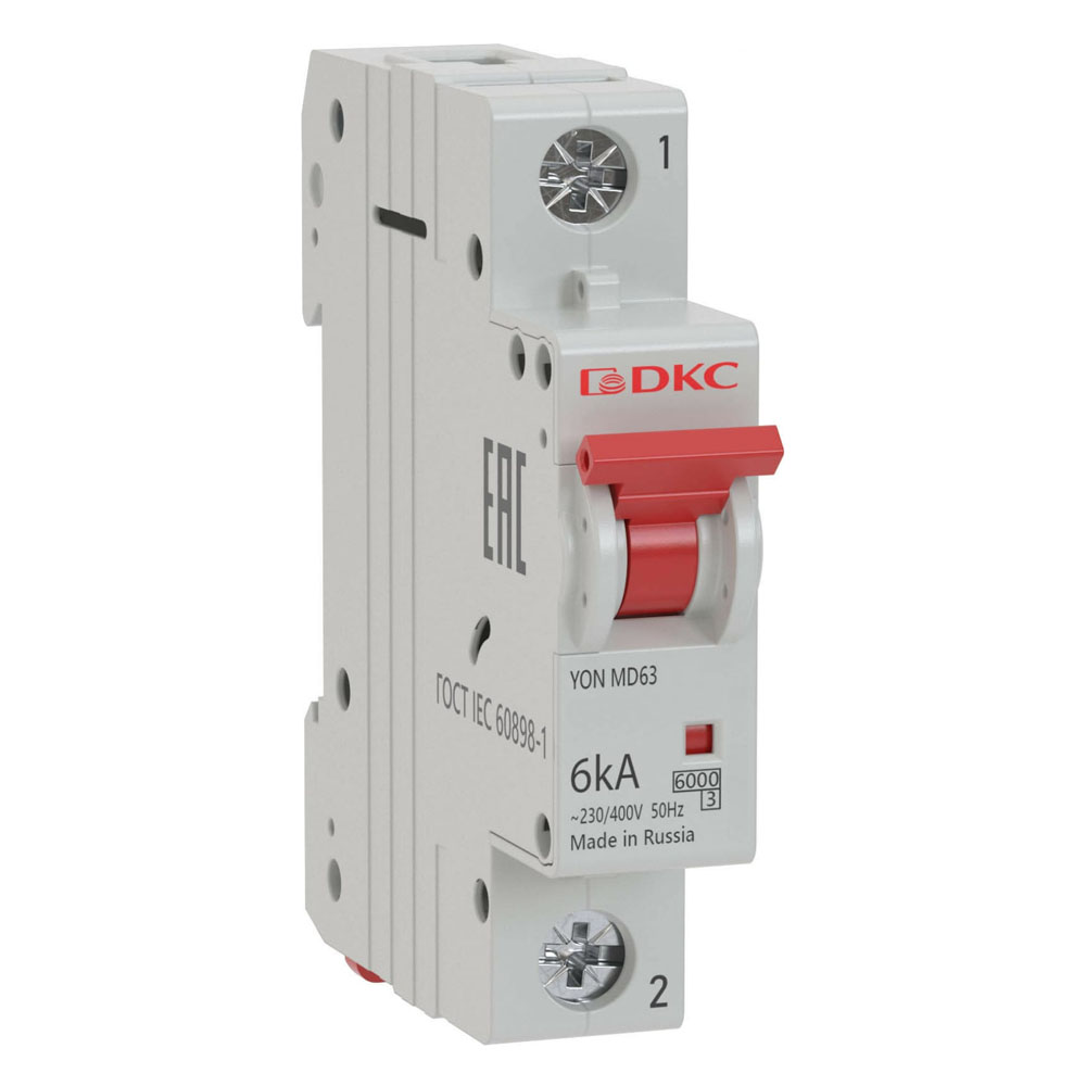 Автоматический модульный выключатель DKC YON MD63 1P 10А C 6kA MD63-1C10-6 номиналом 10 A с характеристикой расцепителя "C" и отключающей способностью 6 кА предназначен для применения в электрических цепях напряжением до 400 В переменного тока частоты 50 Гц, их защиты при перегрузках и коротких замыканиях, проведения тока в нормальном режиме и оперативного включения и отключения указанных цепей. К выключателю могут присоединяться независимый расцепитель в отдельном модуле и вспомогательные контакты в отдельном модуле. Независимый расцепитель и вспомогательные контакты заказываются отдельно и устанавливаются на выключатели потребителем по мере необходимости.