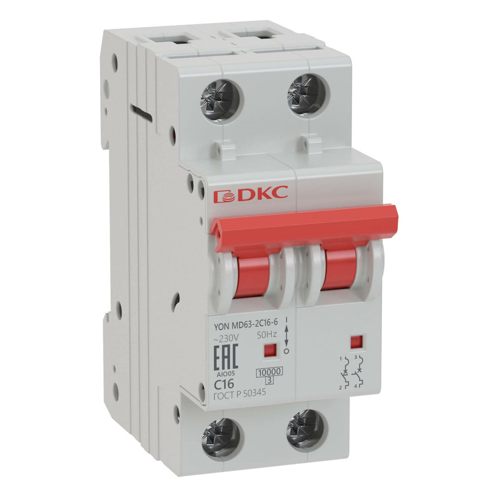 Автоматический модульный выключатель DKC YON MD63 2P 10А C 6kA MD63-2C10-6 номиналом 10 A с характеристикой расцепителя "C" и отключающей способностью 6 кА предназначен для применения в электрических цепях напряжением до 400 В переменного тока частоты 50 Гц, их защиты при перегрузках и коротких замыканиях, проведения тока в нормальном режиме и оперативного включения и отключения указанных цепей. К выключателю могут присоединяться независимый расцепитель в отдельном модуле и вспомогательные контакты в отдельном модуле. Независимый расцепитель и вспомогательные контакты заказываются отдельно и устанавливаются на выключатели потребителем по мере необходимости.
