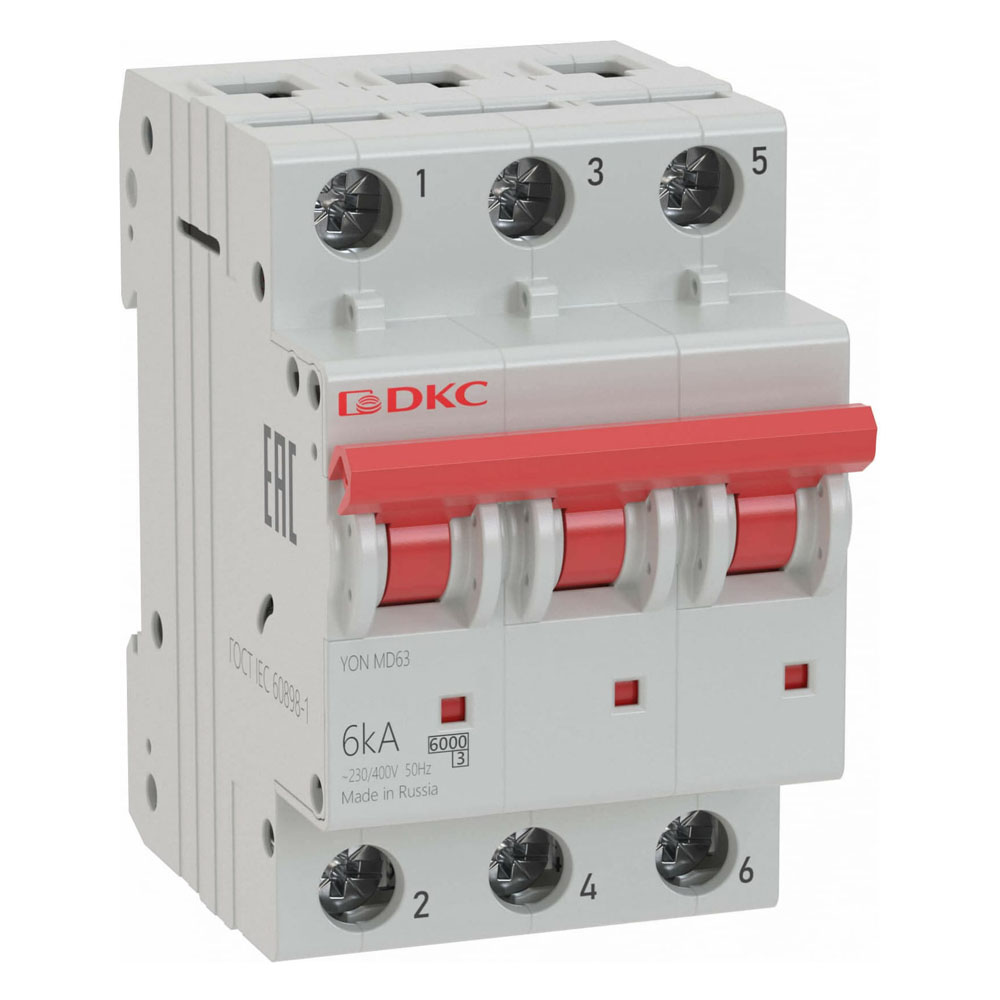 Автоматический модульный выключатель DKC YON MD63 3P 16А C 6kA MD63-3C16-6 номиналом 16 A с характеристикой расцепителя "C" и отключающей способностью 6 кА предназначен для применения в электрических цепях напряжением до 400 В переменного тока частоты 50 Гц, их защиты при перегрузках и коротких замыканиях, проведения тока в нормальном режиме и оперативного включения и отключения указанных цепей. К выключателю могут присоединяться независимый расцепитель в отдельном модуле и вспомогательные контакты в отдельном модуле. Независимый расцепитель и вспомогательные контакты заказываются отдельно и устанавливаются на выключатели потребителем по мере необходимости.