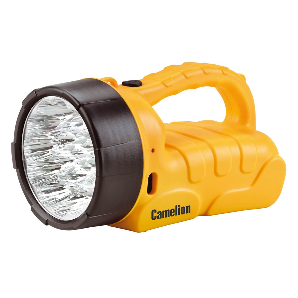 Фонарь Camelion электрический светодиодный аккумуляторный. Цвет корпуса - желтый с черным. Материал корпуса - пластик. Источник света - 19 светодиодов с цветовой темпаратурой 8200К. максимальным световым потоком 48 люмен. Дистанция освещения - до 30 метров. Выключатель - кнопочного типа. Время работы при полностью заряженном аккумуляторе: до 20 часов - яркость падает с разрядом аккумулятора. Время заряда - 16 часов. Дополнительные возможности - режим аварийного включения при выключении сетевого электричества во время заряда. Комплектация: фонарь. свинцово-кислотный аккумулятор с напряжением 6В емкостью 4 А-ч. светодиодный индикатор заряда. сетевой кабель 220 вольт для заряда. упаковка. инструкция. Степень пылевлагозащиты IP22. Упаковка - коробка. Максимальный линейный размер фонаря 18 см. Размер упаковки 11.5 см X 12 см x 20 см. Вес без упаковки 0.99 кг. Вес с упаковкой 1.15 кг.