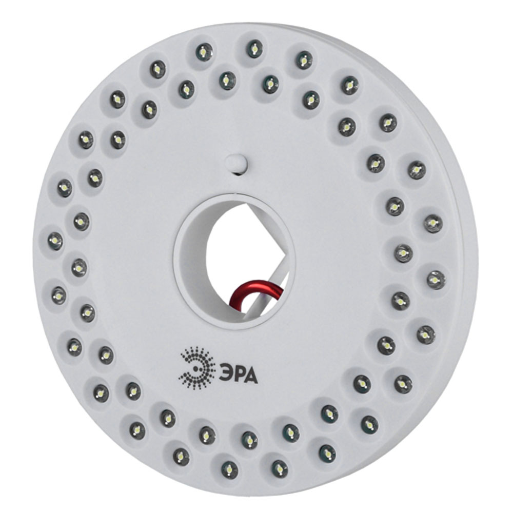 Светодиодный кемпинговый фонарь в футуристичном дизайне, специально разработанном компанией ЭРА. Фонарь предназначен для активного отдыха, отдыха на природе, для пикников, дачи. Дизайн фонаря функционален. 48 мощных светодиодов расположены по кругу таким образом, чтобы освещать максимально большую площадь ярким белым. Светодиоды энергоэкономичны, не перегорают и не требуют замены. Посередине фонаря предусмотрено отверстие, если надеть фонарь на любую подставку, например, на бутылку, получится настольный светильник. Фонарь оснащён мощным магнитом, так что его легко приклеить к металлической поверхности. Корпус выполнен из ударопрочного пластика и защищает от царапин и механических повреждений, а светодиоды встроены внутрь корпуса, что обеспечивает им дополнительную защиту. Дальность луча фонаря составляет 21 метр, мощность — 3,3Вт. Фонарь питается от двух батареек АА. Это позволило сделать фонарь портативным и лёгким, но в тоже время надёжным. Фонарь комплектуется кронштейном для подвешивания. Фонарь можно использовать не только в походах, но и в любых ситуациях, когда необходим яркий дополнительный источник света.