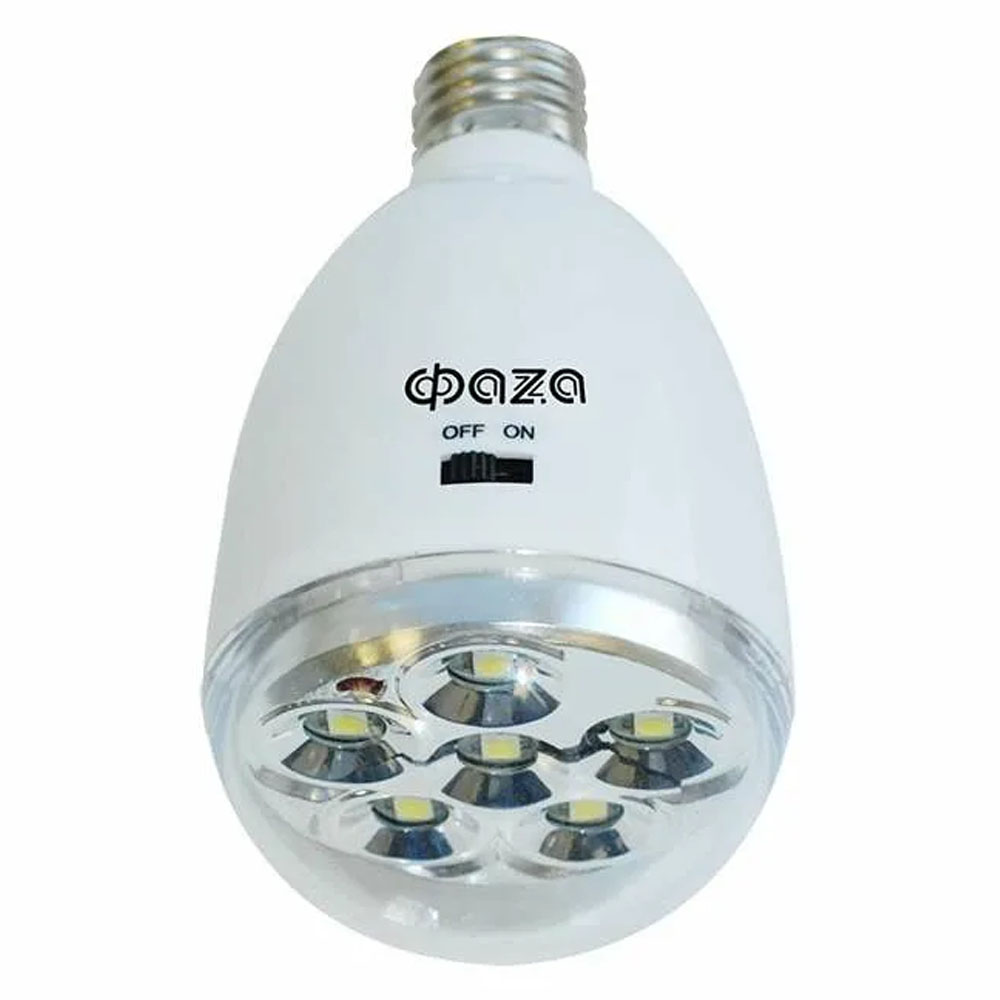 Аккумуляторный фонарь-лампа AccuF9-L1.5W от торговой марки ФАZА предназначен для автономного аварийного освещения в случае отсутствия напряжения электросети и отлично подойдет для использования в быту. Шесть яркий светодиодов мощностью 1,5Вт и мощным световым потоком 90Лм обеспечат хорошую видимость освещаемого пространства в случае отсутствия электроснабжения. При наличии напряжения в сети светильник не горит. Корпус аккумуляторного фонаря AccuF9-L1.5W выполнен в виде лампочки, устанавливается в стационарный патрон с цоколем Е27. Питание светодиодного светильника ФАZА AccuF9-L1.5W осуществляется от встроенного свинцово-кислотного аккумулятора на 900мАч, который заряжается от стационарной сети при помощи встроенного зарядного устройства