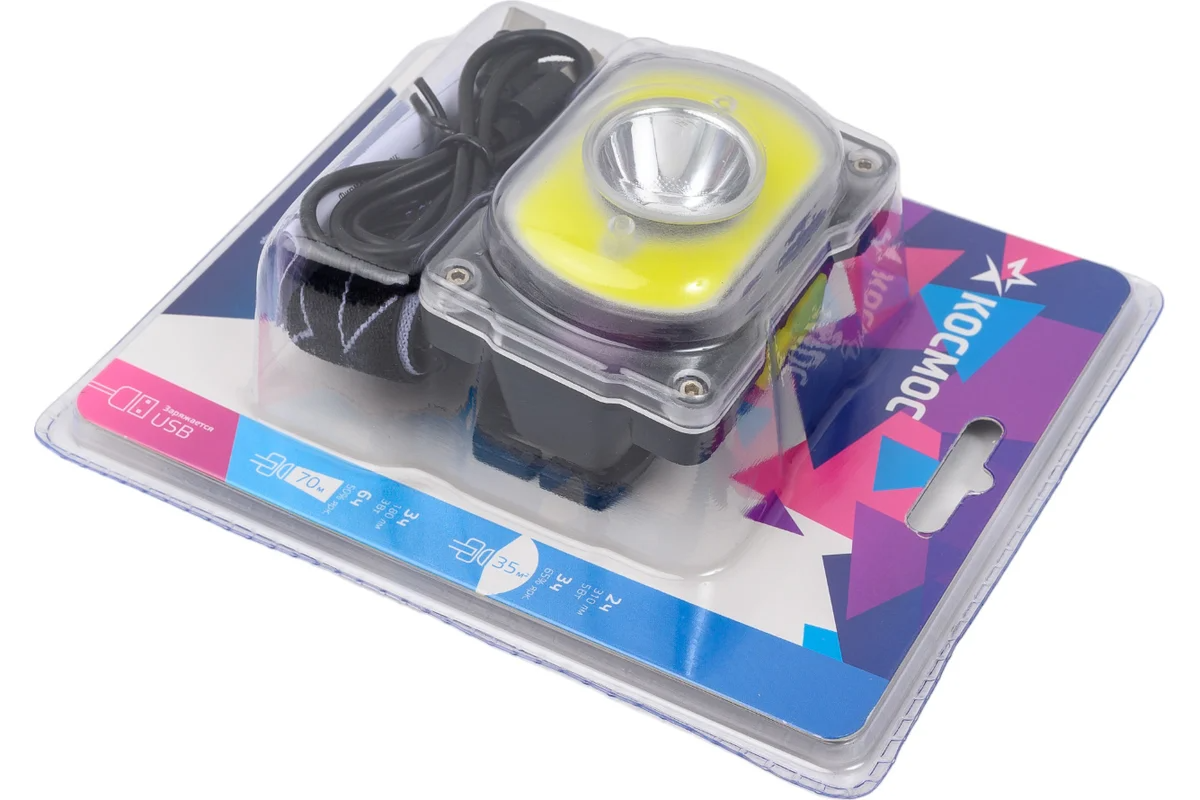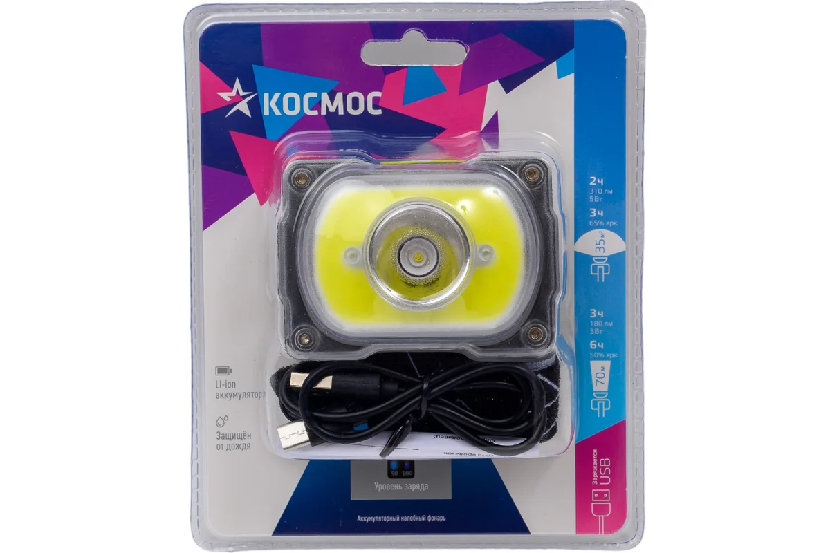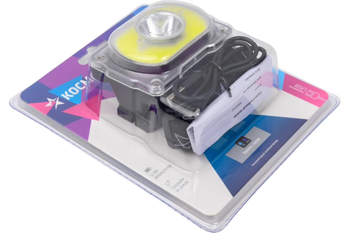 Фонарь налобный акк литиевый 3 Вт+5Вт, IP54 КОСМОС
