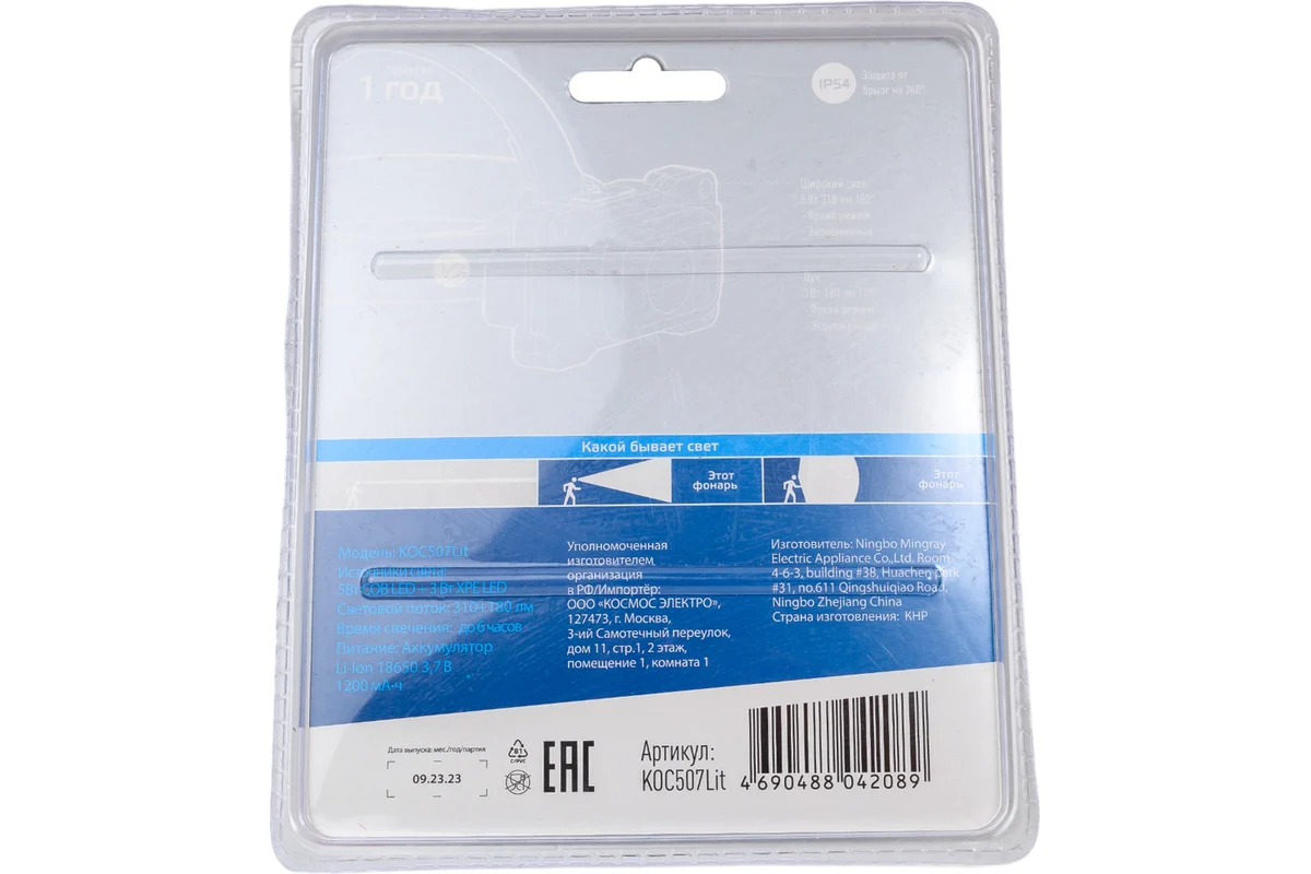 Фонарь налобный КОСМОС (KOC507Lit) - свежий взгляд на дизайн фонаря: вся передняя часть корпуса - рассеиватель из противоударного прочного материала что, во-первых, дает отсутствие стыков, делая защиту от дождя еще надежнее, а во-вторых, большая матовая поверхность делает широкий свет еще мягче, и удобней для заливания светом пространства вблизи. В центре рассеиватель прозрачный, что обеспечивает дальность классического луча.