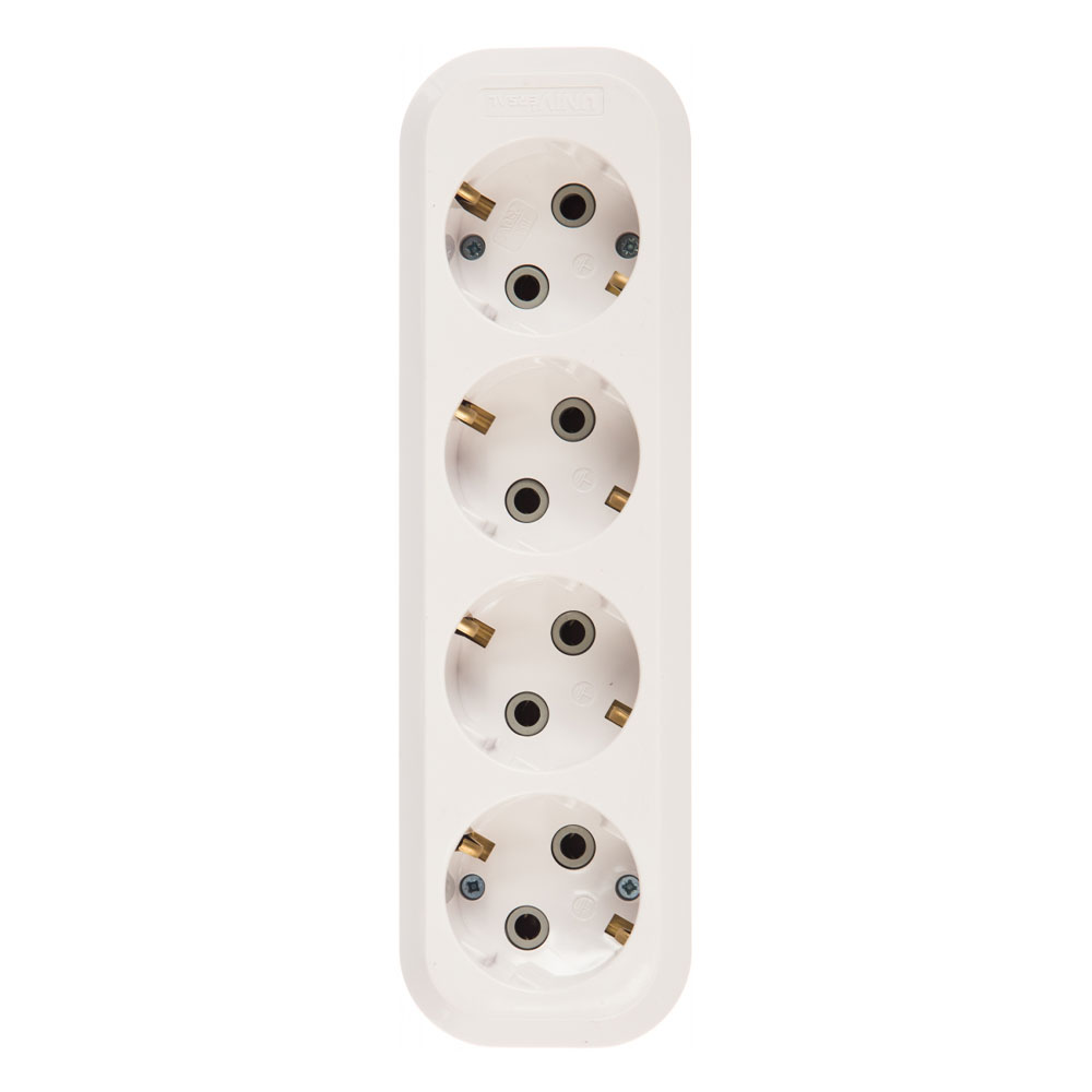 Колодка UNIVersal 4 гнезда, с/з, AБС-пластик E304 - простое и долговечное в использовании электротехническое изделие, которое при соединении с проводом и вилкой может образовывать удлинитель. Также изделие можно зафиксировать на стене и использовать как обычный розеточный блок.