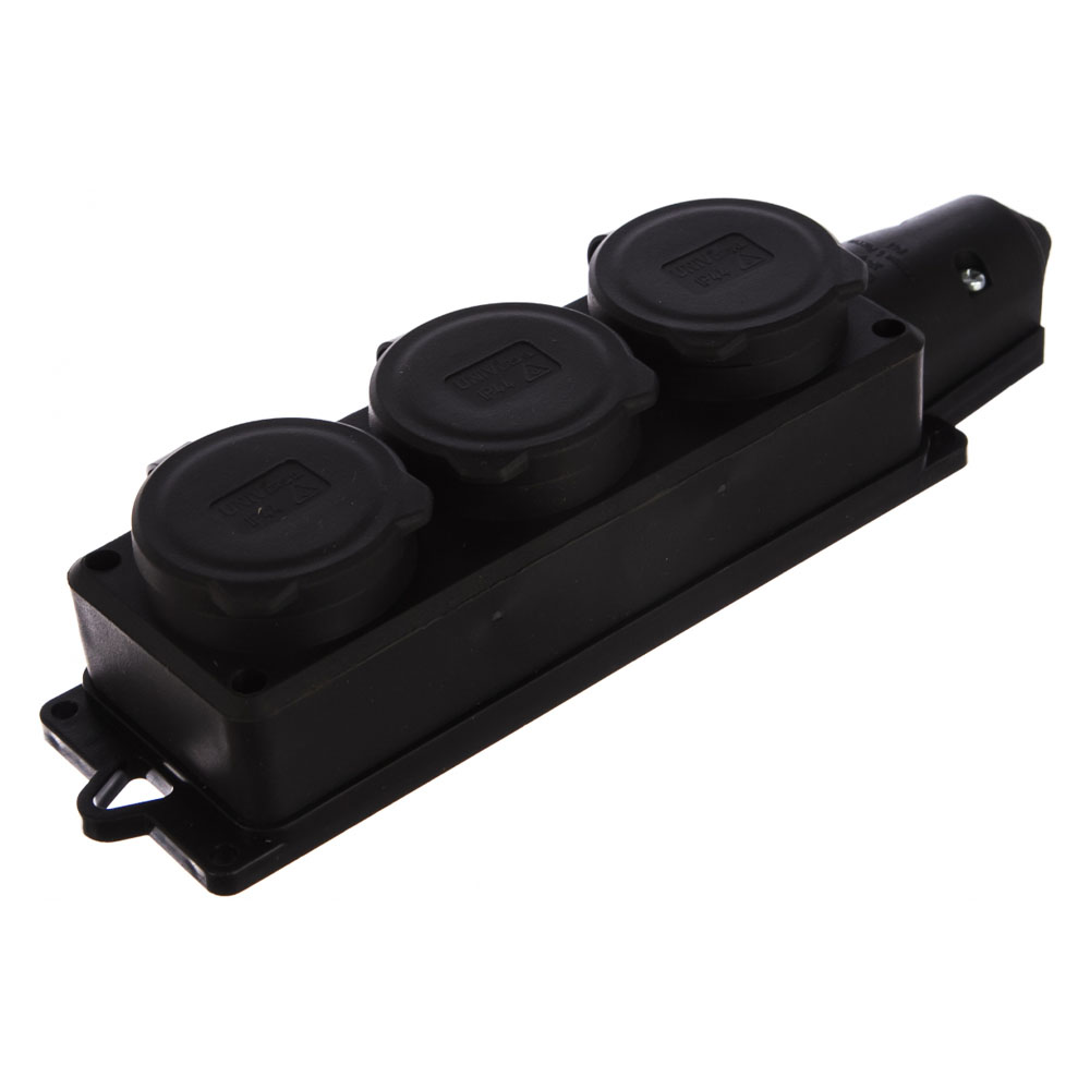 Однофазная 3-х местная колодка с заглушками, каучук UNIVersal 1323 применяется для монтажа удлинителя с проводом любой марки, сечения и длины. Для изготовления данной модели используется прочный, надежный и качественный материал. Для защиты от попадания к контактным группам пыли и влаги предусмотрены специальные крышки.