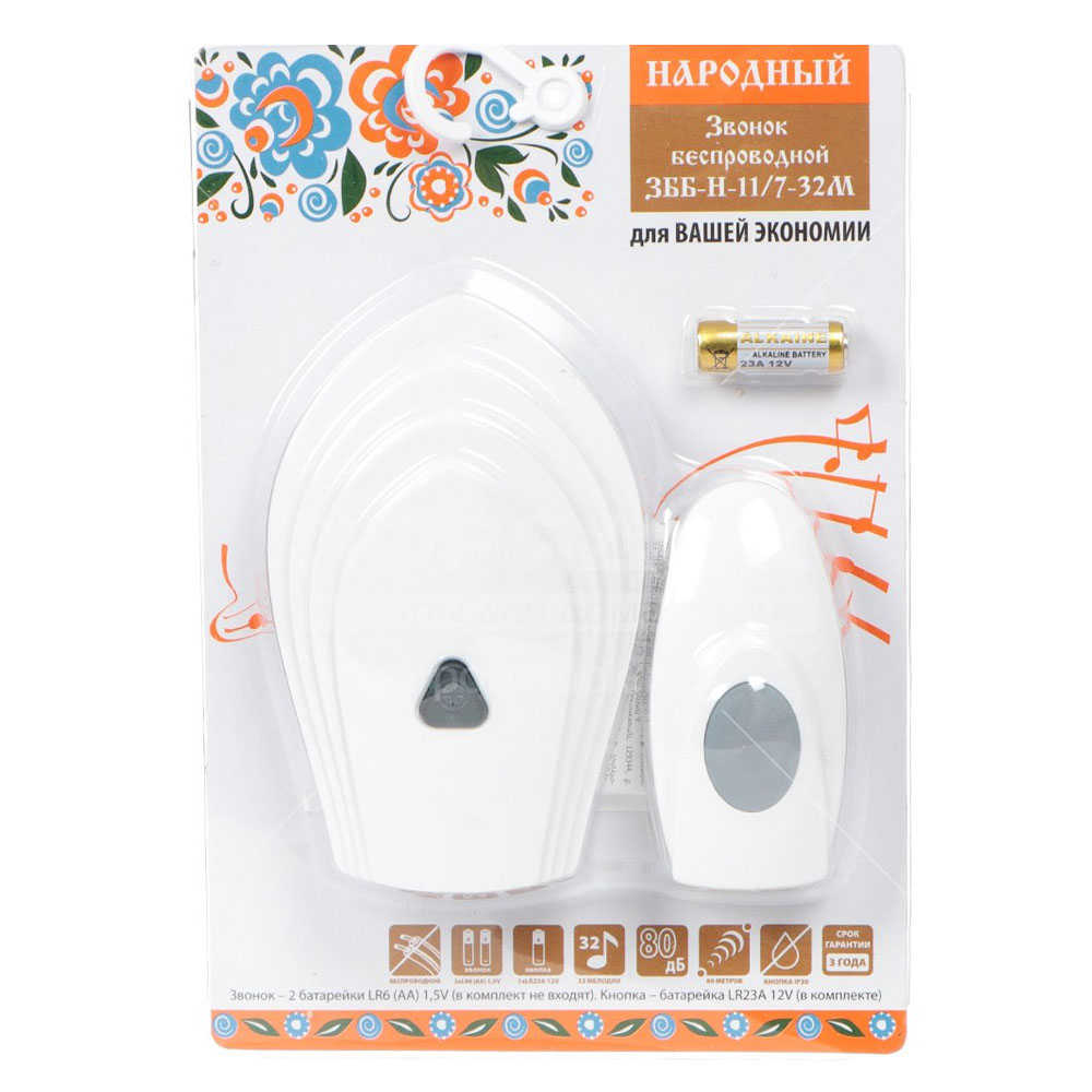 Звонок беспровод 32 мелодии,(2х1,5VAА) "НАРОДНЫЙ" ЗББ-Н-11/7-32М TDM