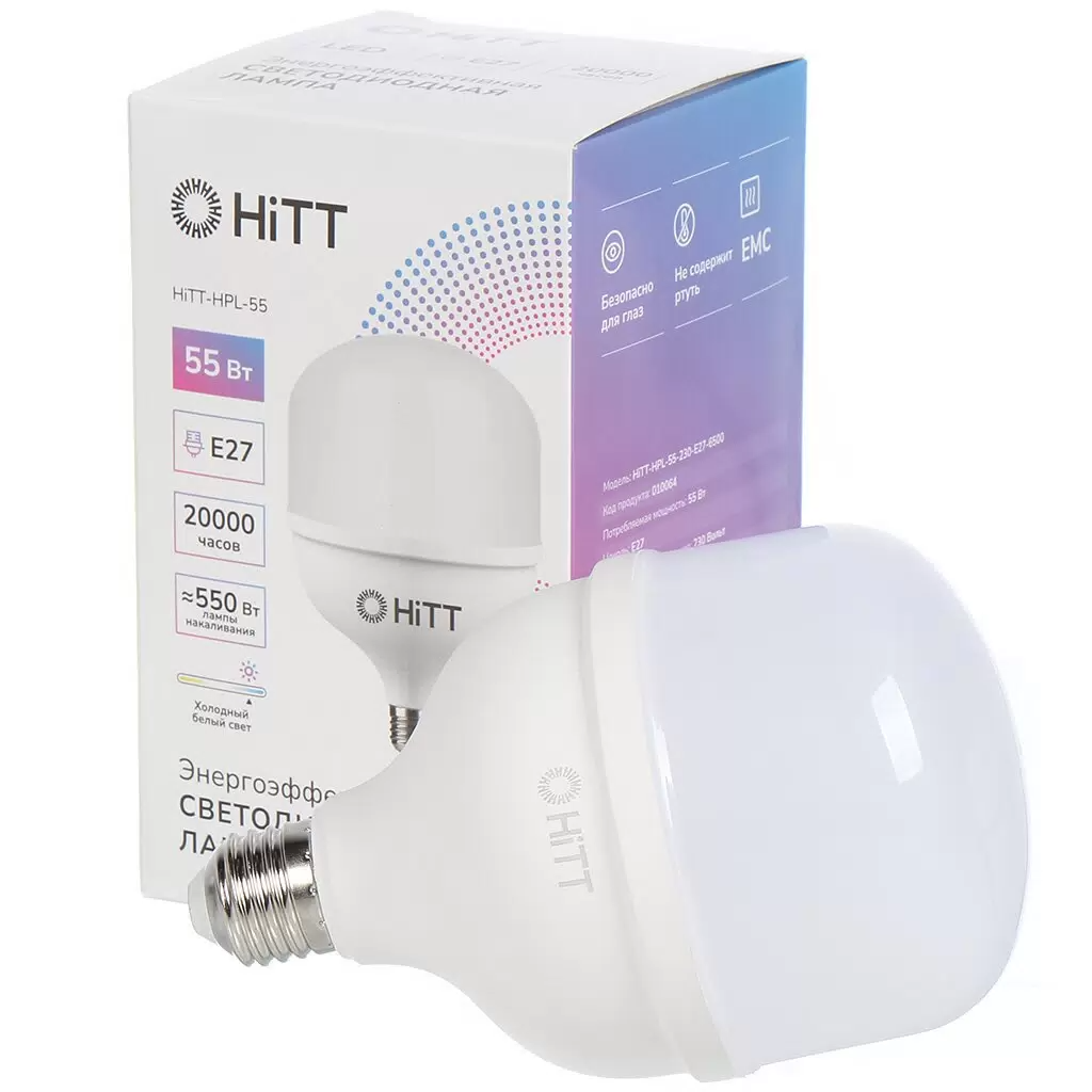 Лампа светодиод 55Вт, 220В, Е27, холод. (6500К) HiTT
