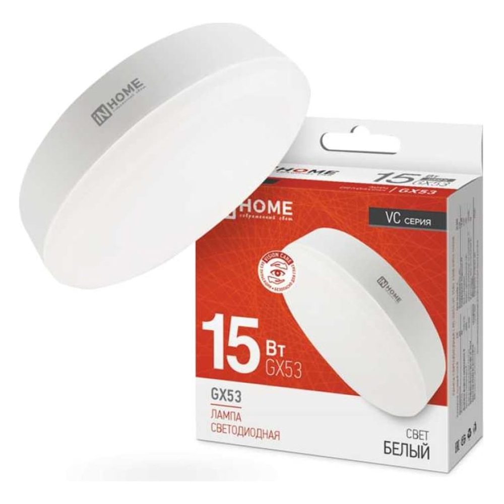 Лампа светодиод.GX 53 15Вт, 220В,матовое стекло,(4000К) нейтр. IN HOME