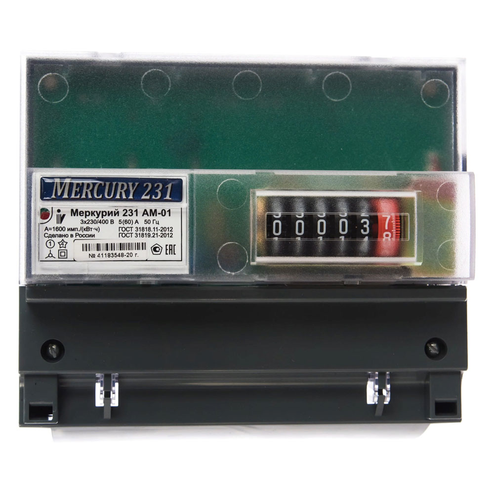 Счетчик электрич 3-фаз однотариф 5- 60А МЕРКУРИЙ 231AM-01 Ш (на DIN-рейку)