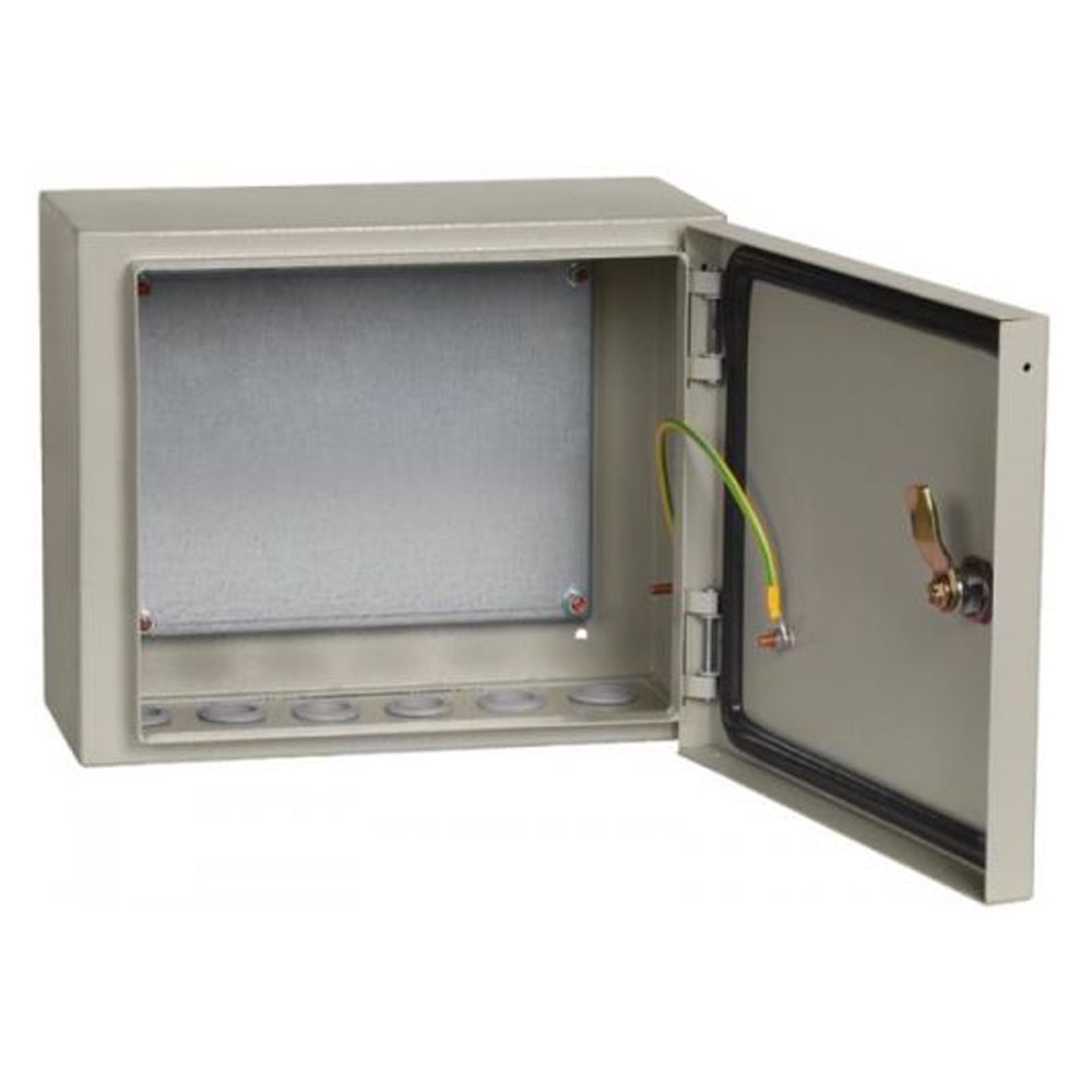 Сварной металлический корпус со съемной монтажной панелью. Дверца корпуса запирается на замок. Ключ замка имеет единый секрет.