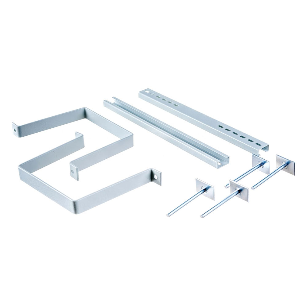 Комплект предназначен для монтажа металлических корпусов: на железобетонных стойках типа СВ110 и СВ105 – крепление скобами; на столбах круглого сечения диаметром до 350 мм – крепление монтажными полосами.