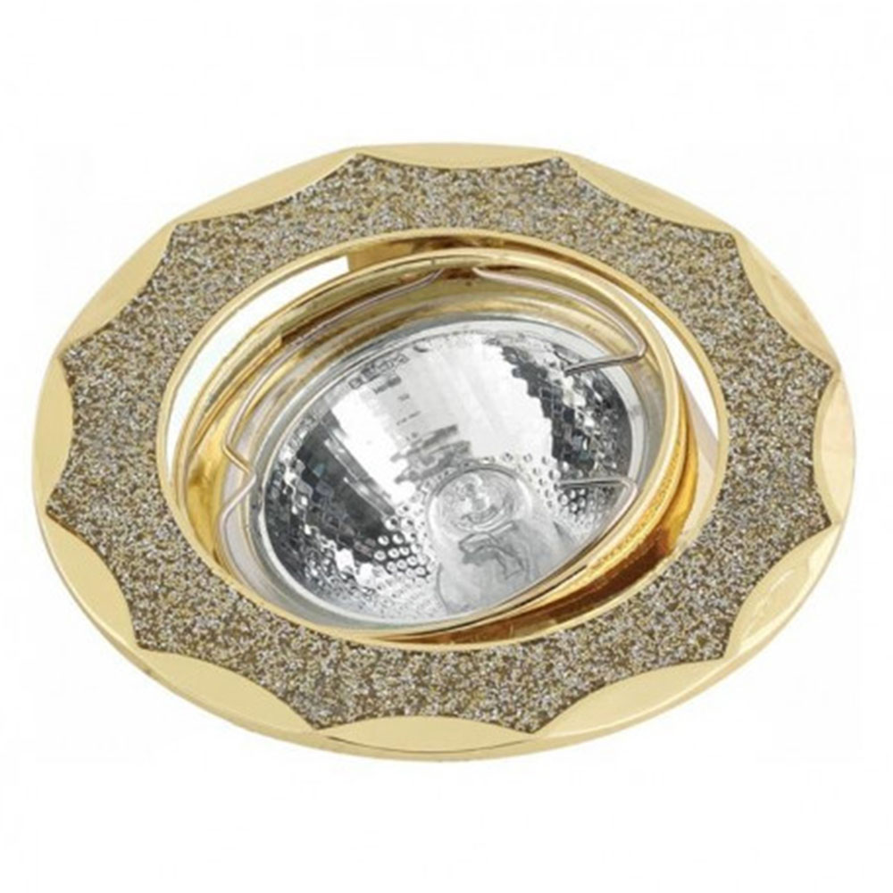 Светильник точечный литой поворотный комбинированный, максимальная мощность 50W, ГЛН/LED/КЛЛ GU5.3, диаметр 84мм, высота 46мм, вырезное отверстие 74мм, IP20, 12V/220-240V, золото/серебрянный/золото. КОМТЕХ