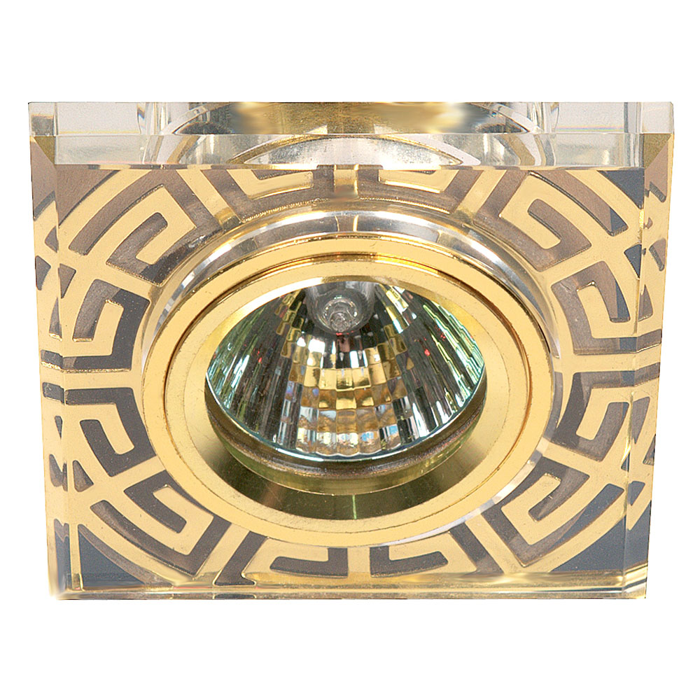 Светильник точечный MR16 GU5.3 12В 50Вт DK27 GD/WH 90/75мм декор стекло квадрат с рисунком ЭРА