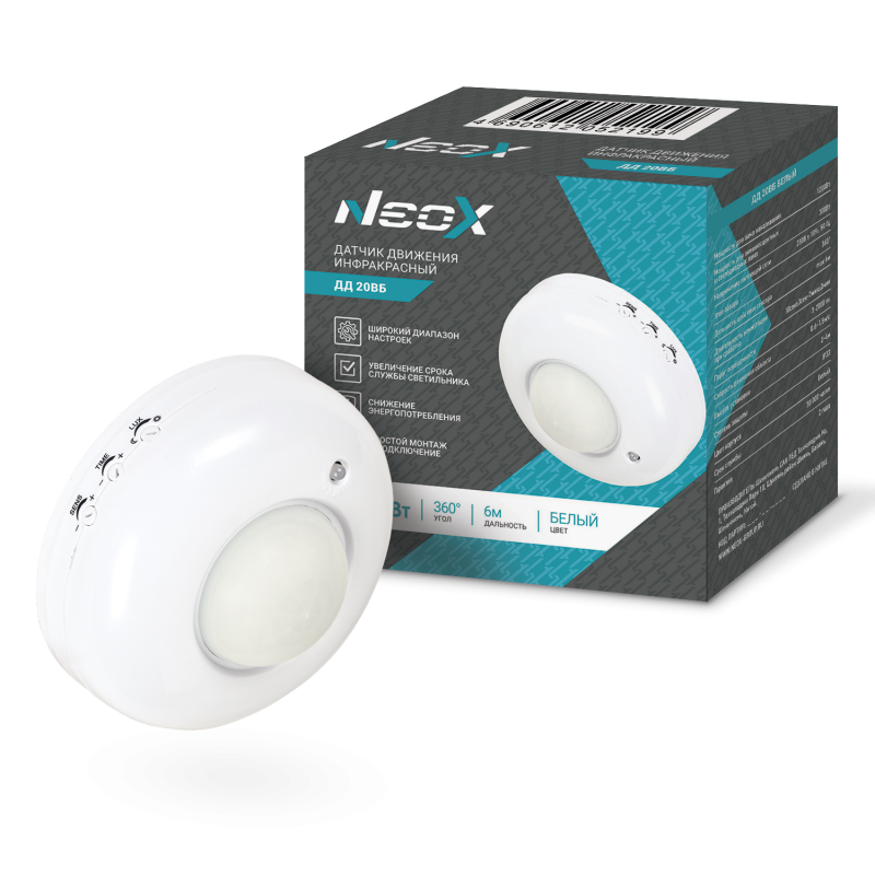 Датчик движения потолочный 1200Вт, 360*, 6м белый NEOX
