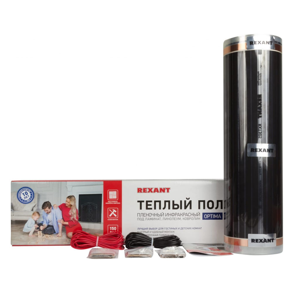 Пленочный теплый пол Rexant Optima 150 3 /0,5 х 6 м/450 Вт 51-0505-7 отличатся легкостью в монтаже, можно укладывать под любое напольное покрытие.