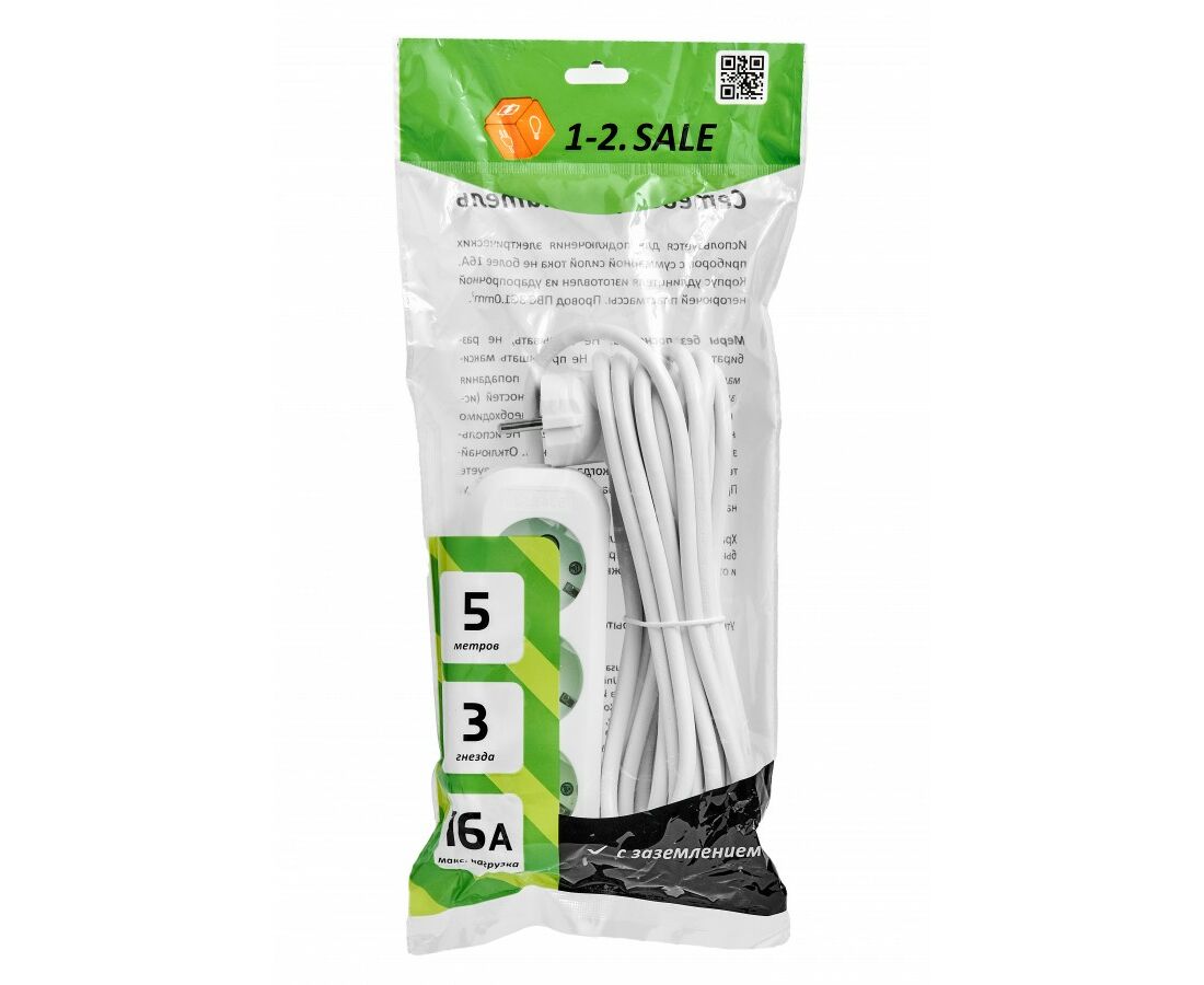 Удлинитель 3 местный 5 метров 16А, с/з 1-2.SALE