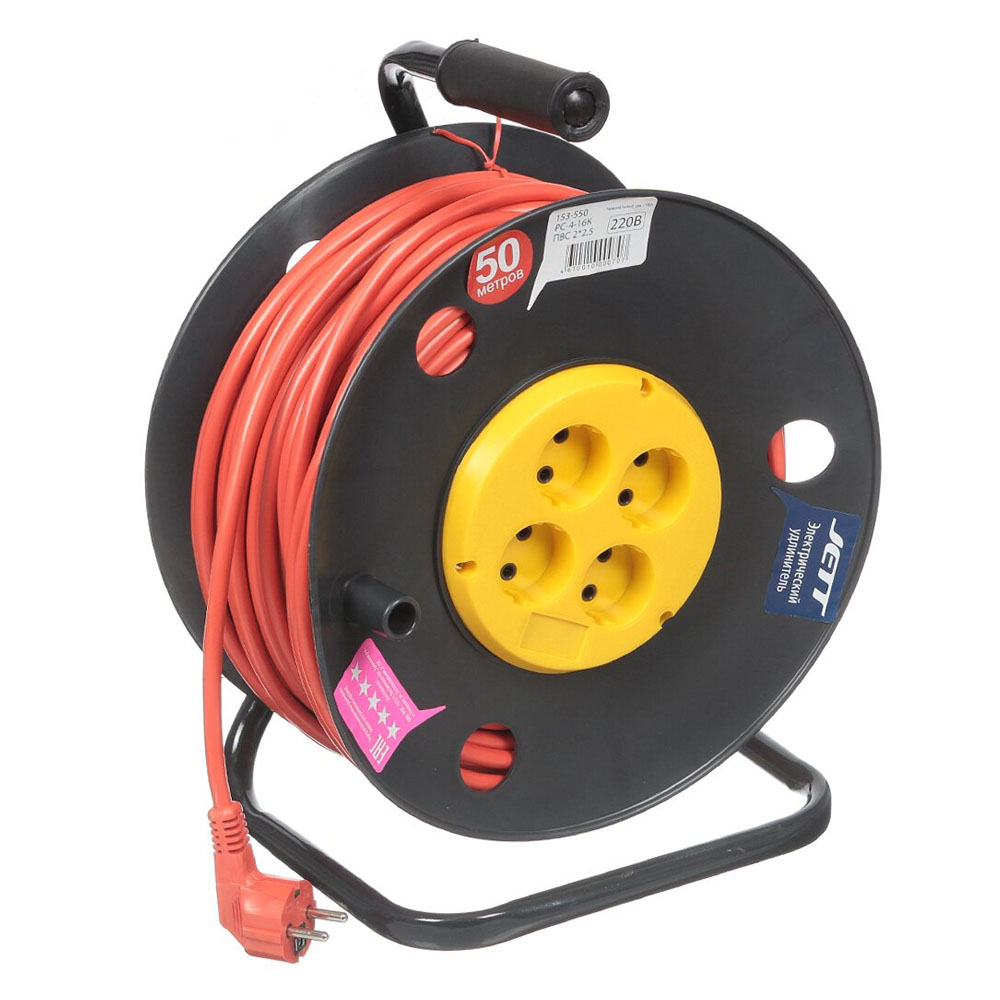 Удлинитель 4 местный 50 метров на мет. стойке 16А, б/з (ПВС 2*2,5) ДЖЕТ