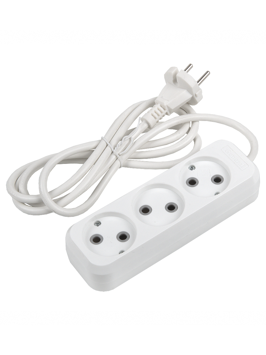 Удлинитель 3 местный 3 метра 10А, б/з GENERAL