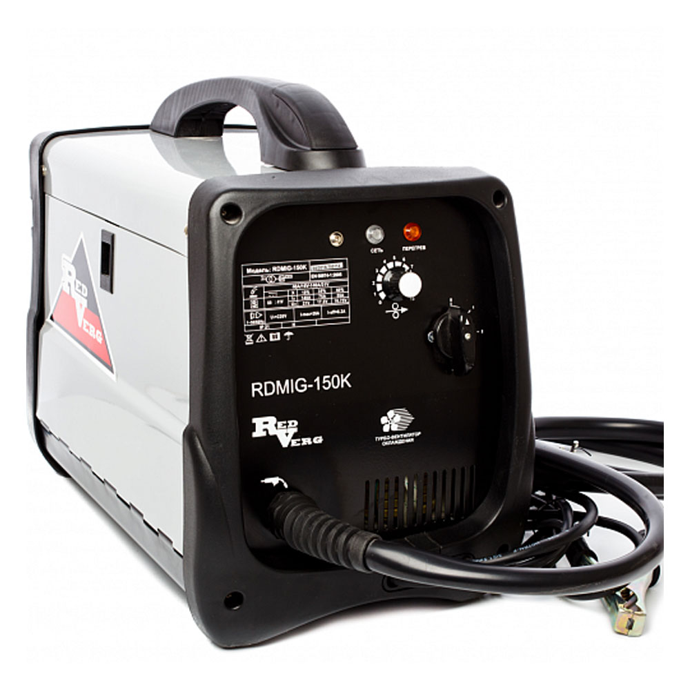 Сварочный аппарат RedVerg RDMIG-150K - полуавтомат для сварки или наплавки металла, позволяющий сваривать заготовки в защитной газовой атмосфере с использованием плавящейся электродной проволоки. При полуавтоматической сварке по методу МIG/МAG в рабочую зону аппарата необходимо организовать подачу углекислого газа или смеси углекислого газа с аргоном. Если вы используете для сваривания металла флюсовую проволоку, в подаче защитного газа нет необходимости.