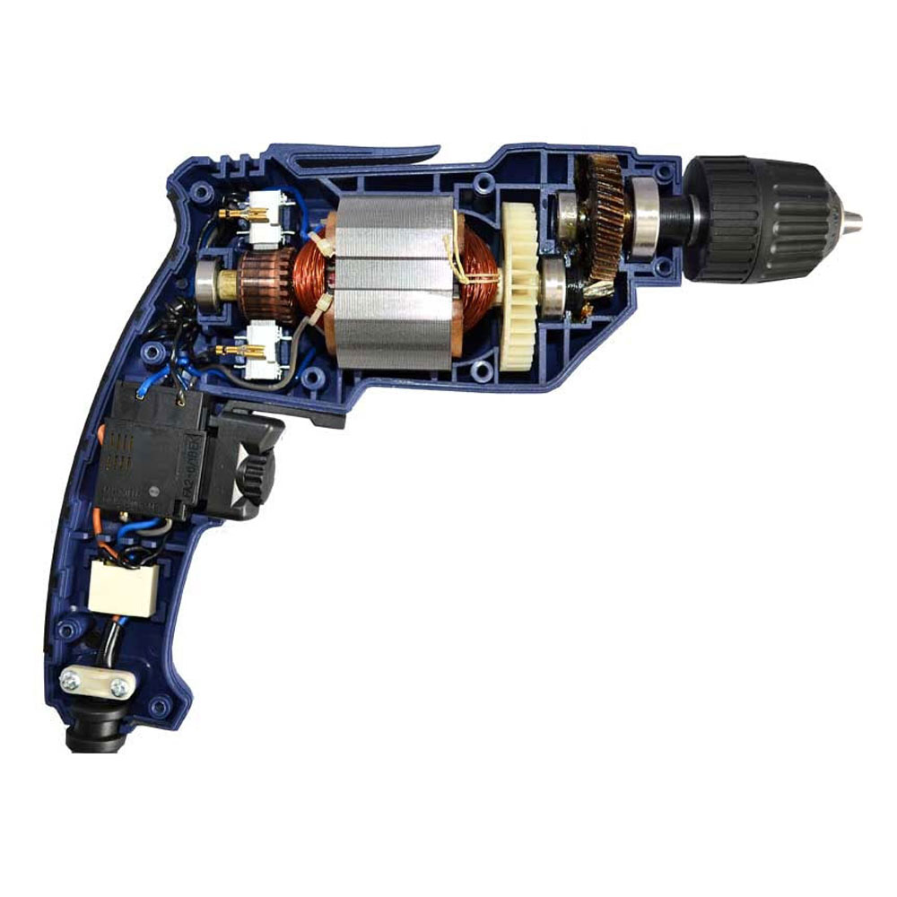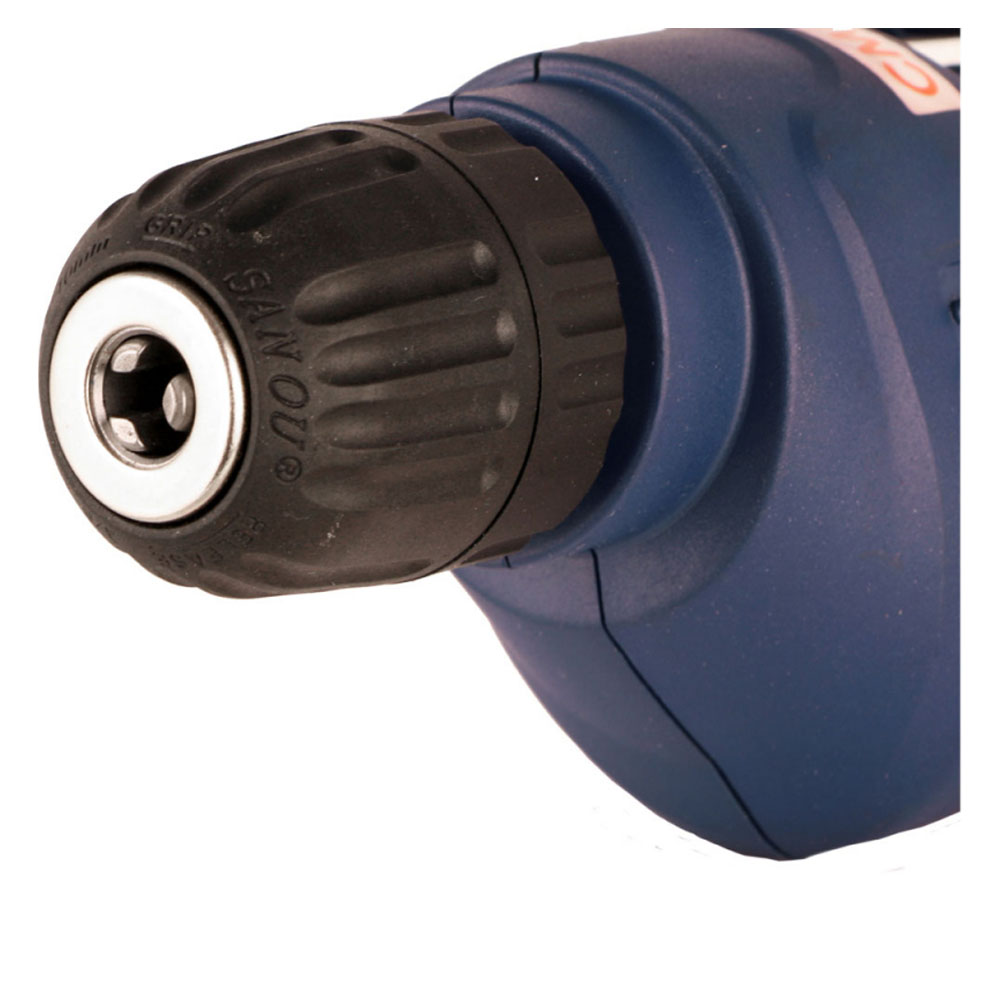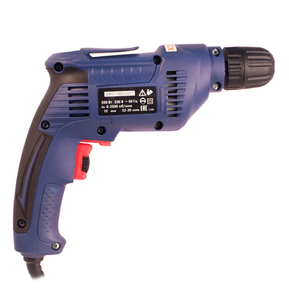Дрель является реверсивной, что позволяет изменять направление вращения шпинделя с патроном и расширяет ее функциональные возможности (может использоваться для отворачивания винтов и шурупов, нарезания резьбы метчиками и т.д.).