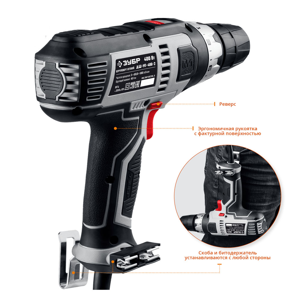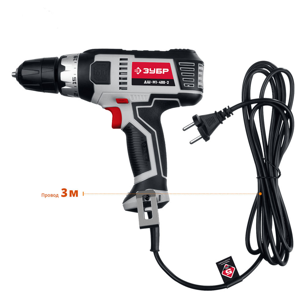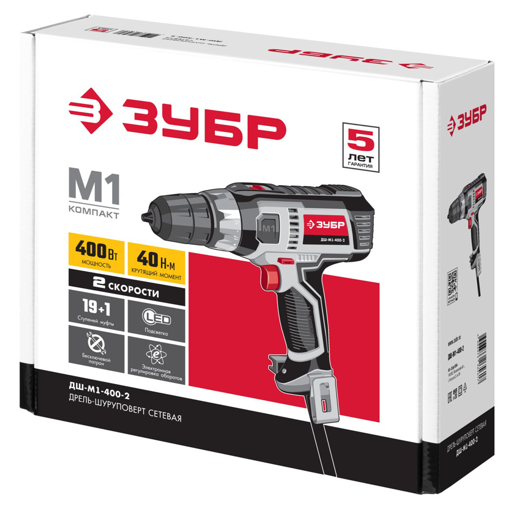 Дрель-шуруповерт ЗУБР ДШ-М1-400-2 (400Вт,0-1800об/мин,1,8кг)