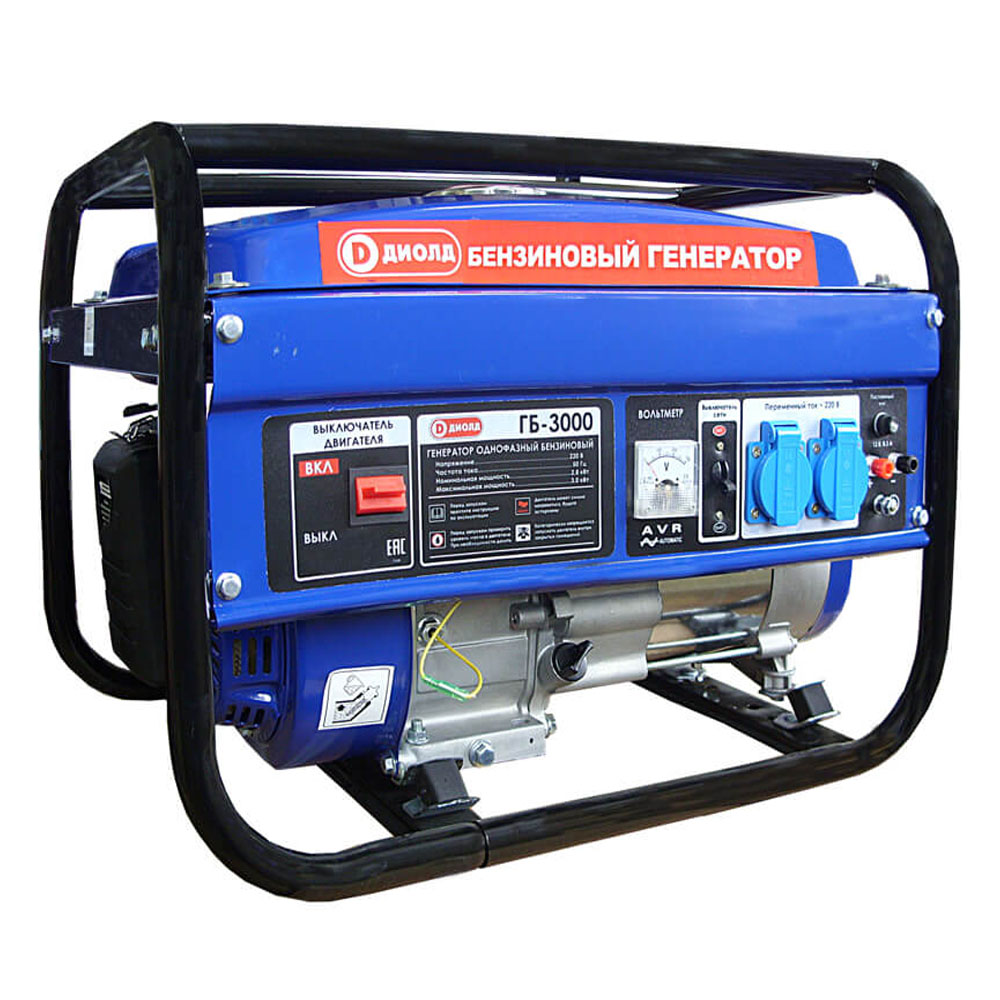 Электрогенератор ГБ-3000 ДИОЛД (3кВт, бак 15л, вес 39кг, 4-х тактный, 340г/кВтч))