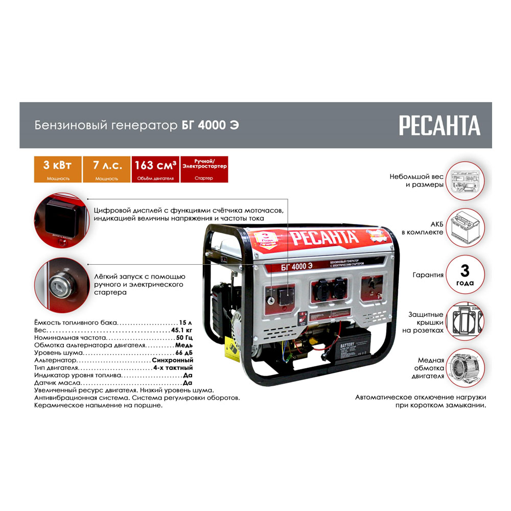 Преимущества Ресанта БГ 4000 Э 64/1/52