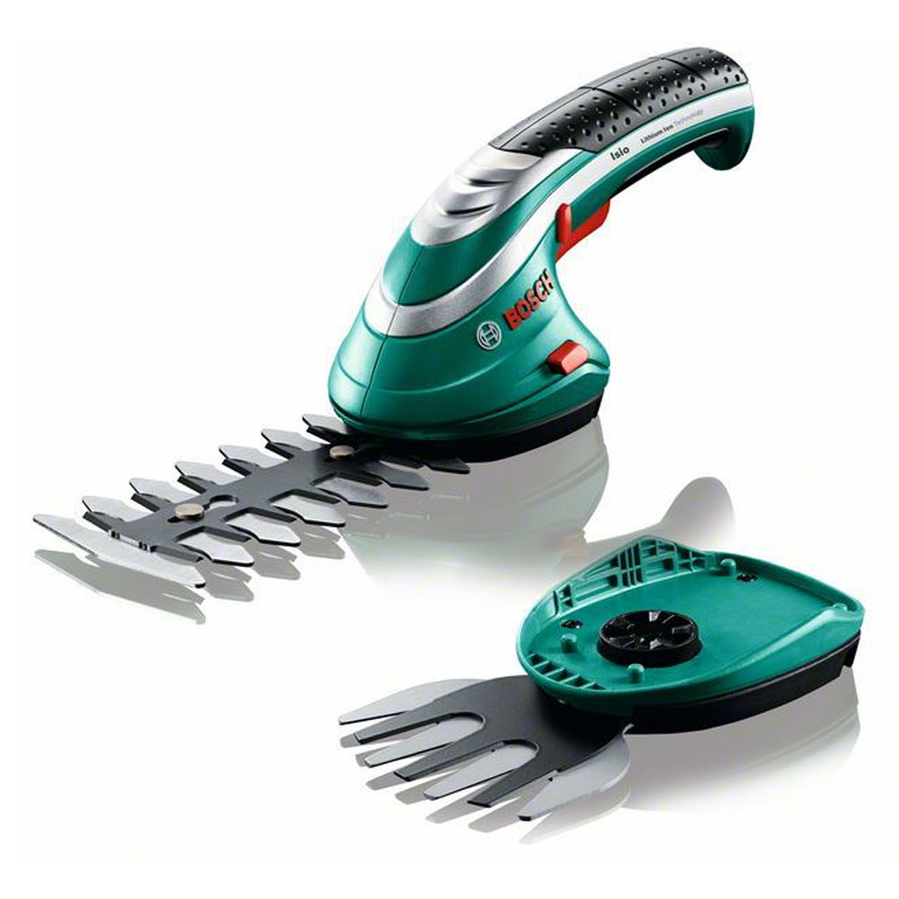 Кусторез/ножницы для травы BOSCH ISIO III – это удобный инструмент для работ на приусадебном участке. Его мощность составляет 3,6 В, чего хватает для обычных бытовых нужд. Устройство имеет литиево-ионный аккумулятор, благодаря которому оно может работать беспрерывно без подзарядки почти час. Лезвия двух основных насадок, предназначенных для обрезки травы и кустов, имеют оптимальную длину: 80 и 120 мм соответственно. Так же положительными сторонами являются: маленький вес кустореза/ножниц для травы BOSCH ISIO III – всего 0,5 кг, система предупреждающая блокировку, индикатор заряда батареи и невысокий уровень шума (77 дБ). Быструю и удобную замену насадок ножниц предоставляет система Bosch-SDS.