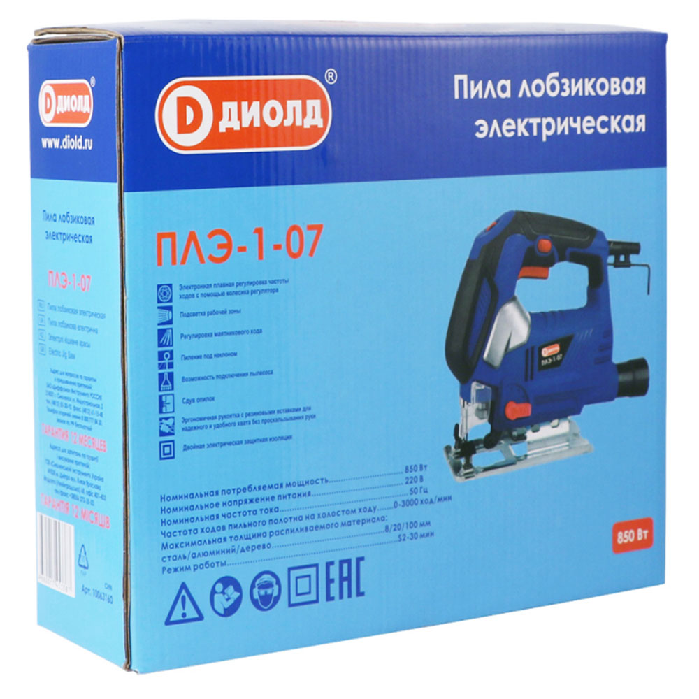 Пила лобзиковая электрическая ПЛЭ-1-07 предназначена для сквозного резания твердой и мягкой древесины, клееной древесины, фанеры, древесно-стружечных плит (в том числе с цементной связкой), древесноволокнистых плит (в том числе ламинированных), стали (в том числе нержавеющей), многослойных материалов, плексиглаза, изоляционных материалов, вспененного полистирола, армированных стекловолокном пластиков, картона, резины, кожи, ковровых покрытий и прочих мягких материалов, а так же керамики, стекла, газобетона, кирпича и абразивных материалов в бытовых условиях.