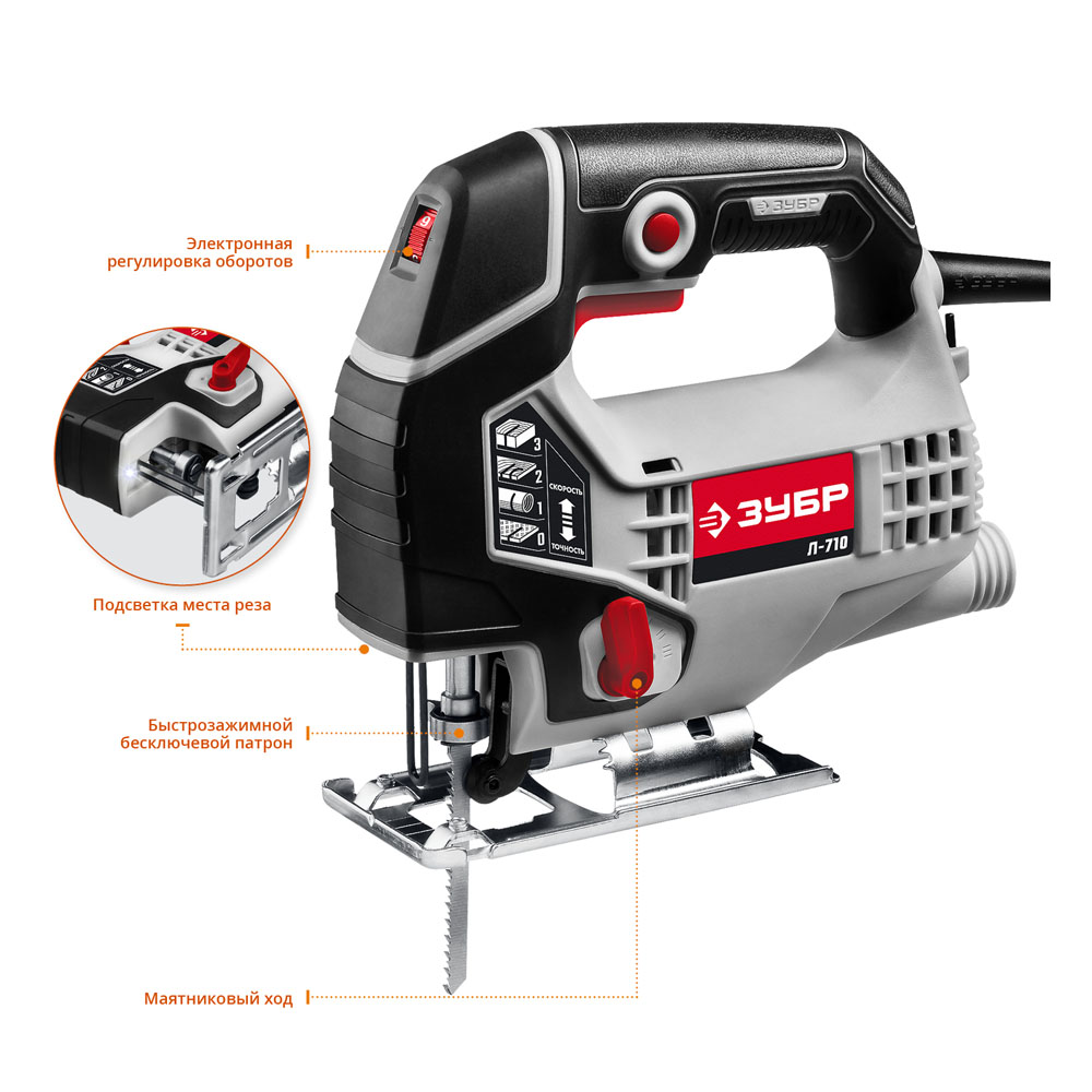 Лобзик ЗУБР Л-710 (710Вт,глубина пропила 80мм,2.0кг)