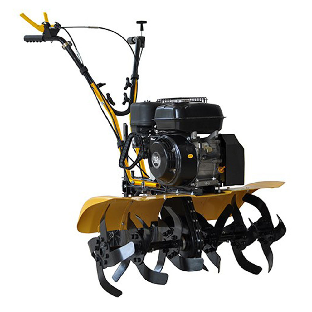 Для выполнения поставленной перед агрегатом задачи конструкторы снабдили его всеми необходимыми компонентами. Мотокультиватор снабжен четырехтактным одноцилиндровым бензиновым мотором, выдающим 6,5 л.с., топливным баком на 3,6 литра бензина марки АИ-92, опорным колесом, специальным сошником для контроля глубины вспашки и набором прочных одинарных и двойных рото