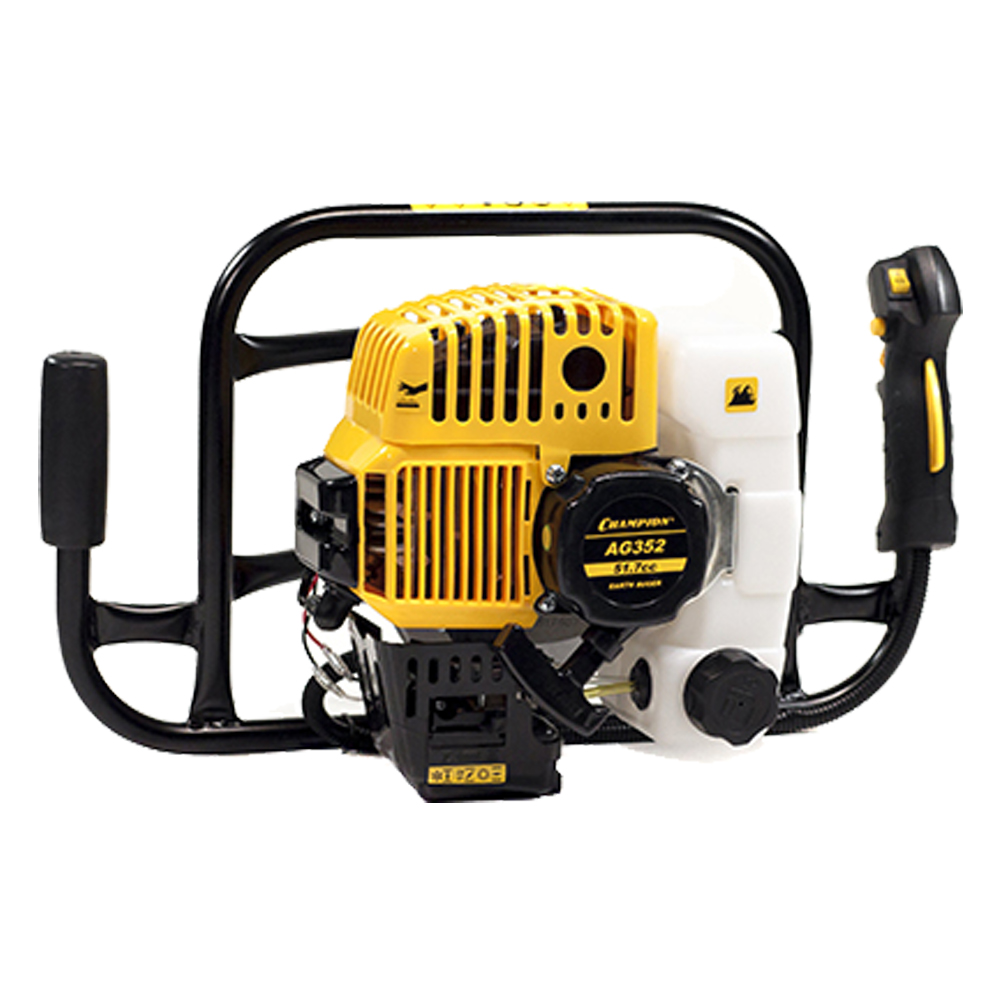 Мотобур Champion AG352 оснащен 2-х тактным двигателем с воздушным охлаждением. Имеет прочную раму с рукоятками, на одну из которых выведены органы управления, что улучшает контроль над инструментом. На данный мотобур устанавливаются шнеки для льда и почвы диаметром от 60 до 250 мм.