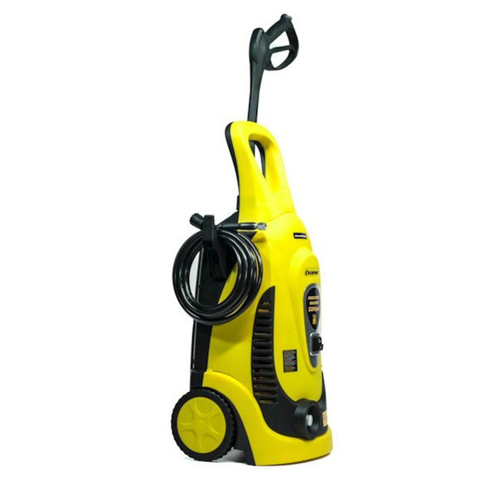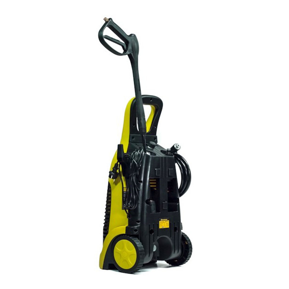 Компактная и мощная бытовая минимойка, обеспечивающая давление воды вплоть до 150 бар, при этом её расход достигает 402 л/час. К особенностям отнесём удобную систему забора воды из любых ёмкостей, что позволяет не беспокоиться об источнике. В комплект поставки входят веерная и точечная насадки. Предусмотрена также защита от перегрева и фильтр предварительной очистки воды – в общей сложности всё это благоприятно сказывается на долговечности двигателя. Длина 5-метровый шланг регулируется катушкой для наматывания, такая же катушка предусмотрена и для сетевого шнура.