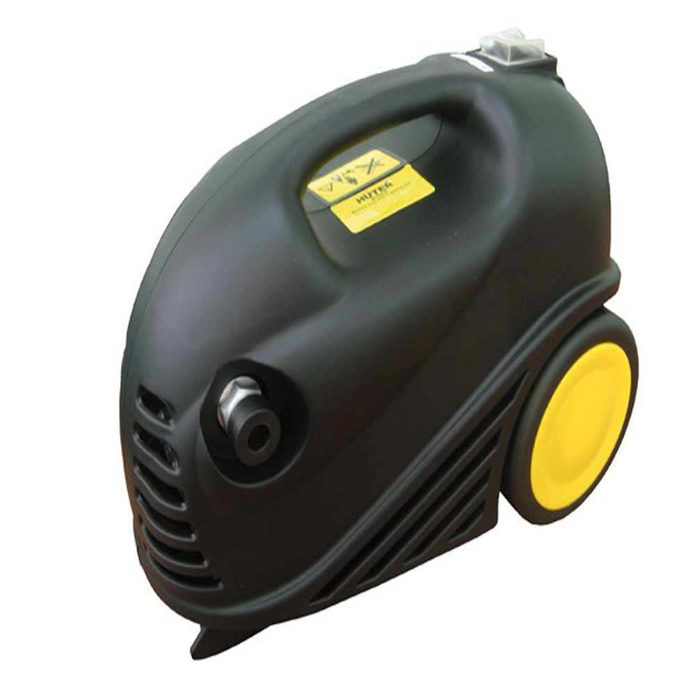 Задняя нижняя часть пластикового корпуса оборудована двумя большими колёсами для перемещения инструмента по поверхности. Мощность установленного на Huter W105-G двигателя достигает 1400 Вт. Быстрому удалению загрязнений способствует выходное давление, которое составляет: рабочее – 70 бар, максимальное – 105 бар. Температура воды на входе не должна превышать 50 °С.