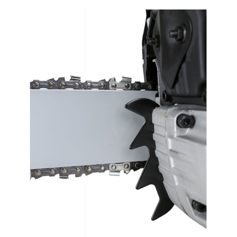 безопасность использования (передний щиток служит одновременно защитой руки и инерционным тормозом цепи)