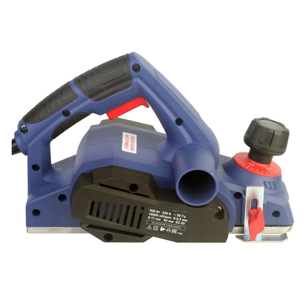 Рубанок обеспечивает направленный выброс стружки и плавное регулирование глубины строгания.