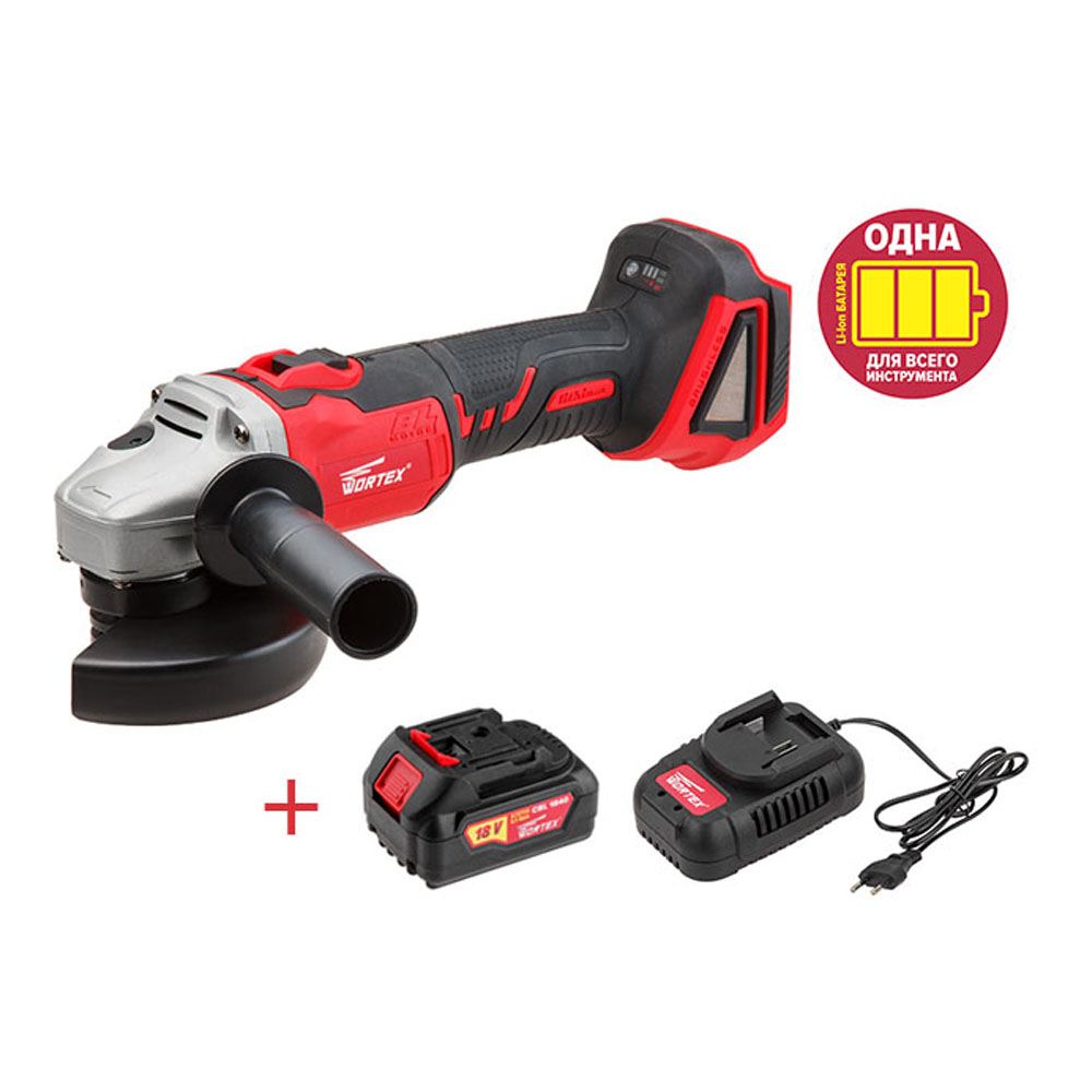 Углошлиф. маш. аккумуляторная WORTEX CAG 1812 E (18В, 1акк, 4Ач, 125мм, 8000об/мин, 1,6кг)