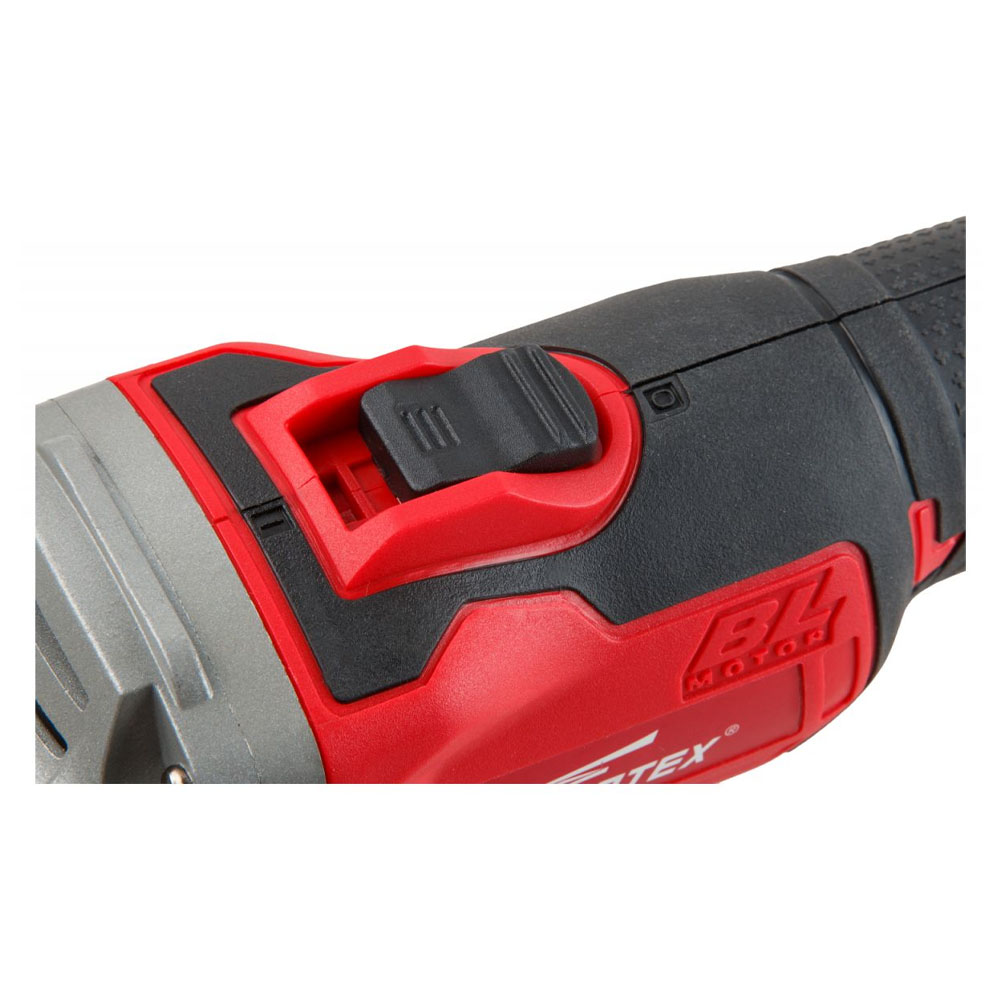 Бесщеточная аккумуляторная углошлифмашина с тонкой обрезиненной рукояткой отличается мощным двигателем, сочетающимся с небольшим весом и компактным размером, возможностью использования в местах без электроснабжения.