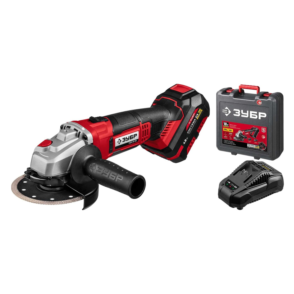 Углошлиф. маш. аккум. ЗУБР УШМ-18-125-41 (18В, 4Ач, 125мм, 10000 об/мин, 1,5кг)