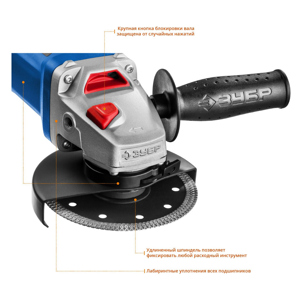 Для зачистки, шлифовки и резки металлов, обработки бетона и камня при установке соответствующих шлифовальных, отрезных, алмазных кругов
