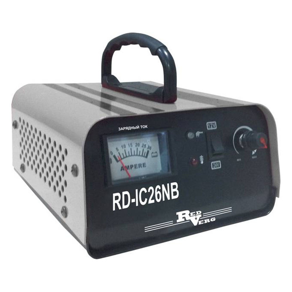 Зарядное устройство RedVerg RD-IC26NB - это надежный и качественный помощник любого автовладельца, который позволит ему быстро зарядить аккумуляторную батарею для дальнейшего запуска двигателя транспортного средства. Модель, оборудованная ручкой для ее удобной переноски, предназначена для подзарядки АКБ свинцово-кислотного типа с напряжением 12 или 24 В. Для зарядки 6-вольтовых аккумуляторов она не подходит. Для информирования пользователя о текущем рабочем состоянии устройства имеется шкала тока заряда и светодиодные индикаторы.