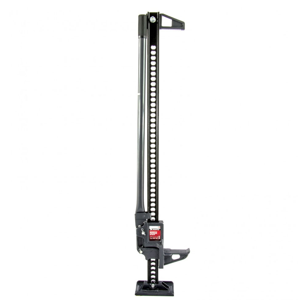 Реечный домкрат Matrix High Jack 505175 незаменим для автолюбителей при необходимости ремонта автомобиля. С его помощью можно поднимать внедорожники и грузовики весом до 3 т на высоту 135-1016 мм. Несущая рейка дополнена зацепной петлей, поэтому домкрат также можно использовать как ручную лебедку или стягивающее устройство.