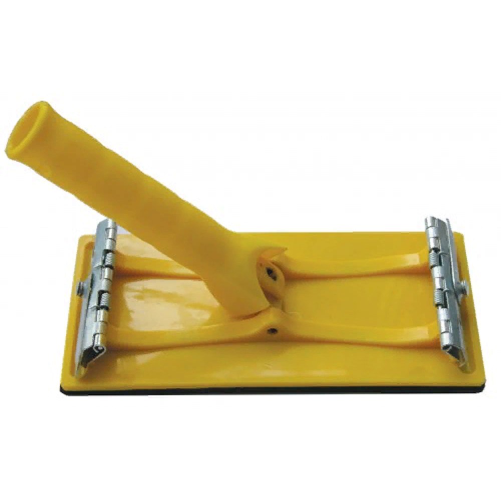 Инструмент оснащен металлическими зажимами, с помощью которых фиксируются сетки и шлифовальные листы.