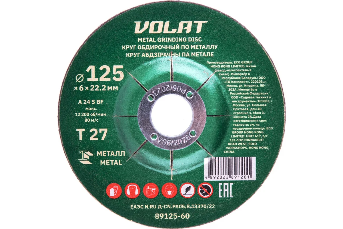 Круг обдирочный по металлу 125х6x22.2 мм ВОЛАТ 89125-60 предназначен для работы совместно с УШМ. Служит для обработки изделий из металла: удаления заусенцев, ржавчины, обработки сварных швов.