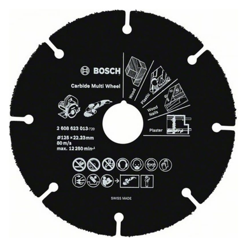 Круг отрезной Bosch предназначен для резки изделий из древесины, древесины с гвоздями, пластика, гипсокартона с помощью угловой шлифовальной машины.