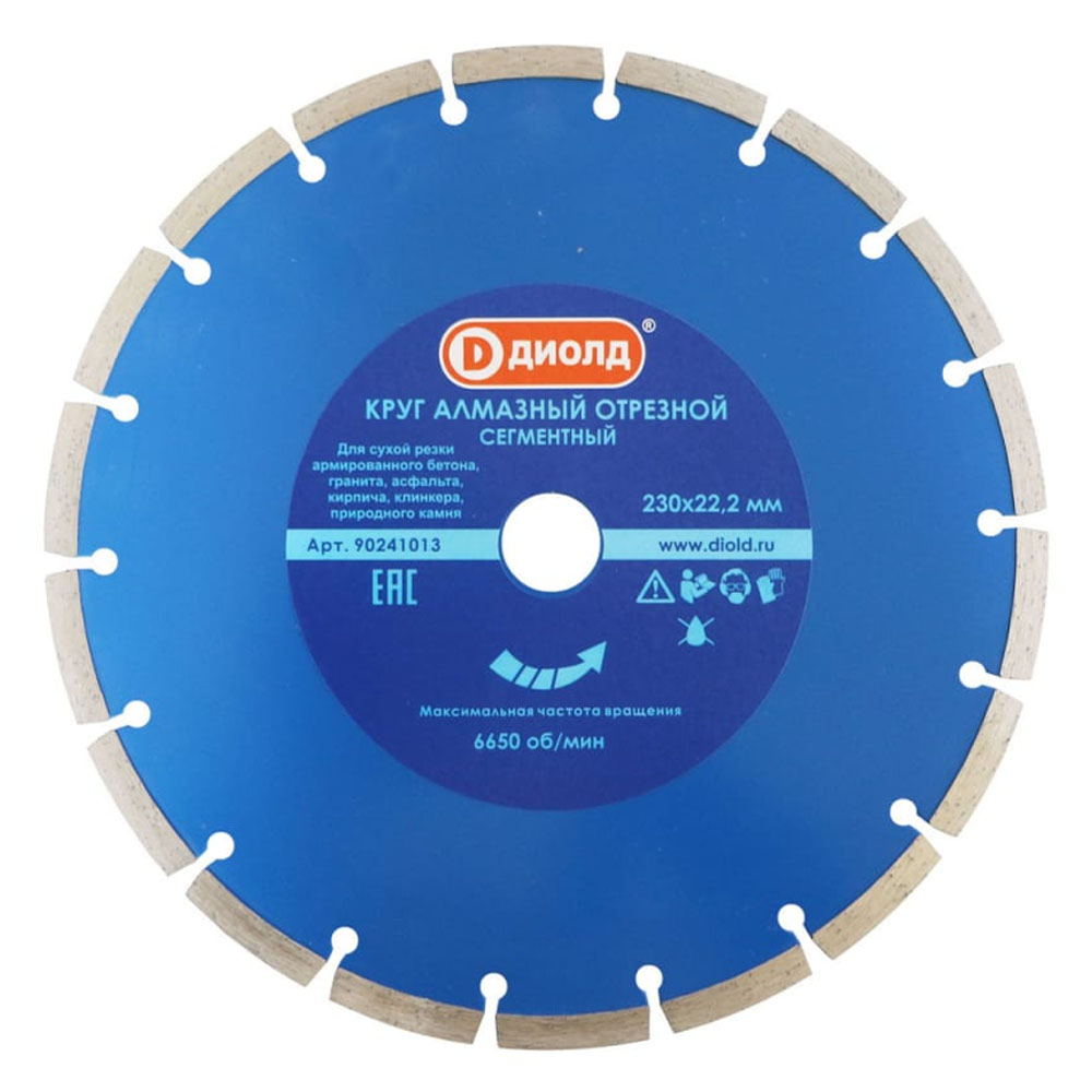 Круг отрезной алмазный 230 х 22 сегм. сухая резка ДИОЛД