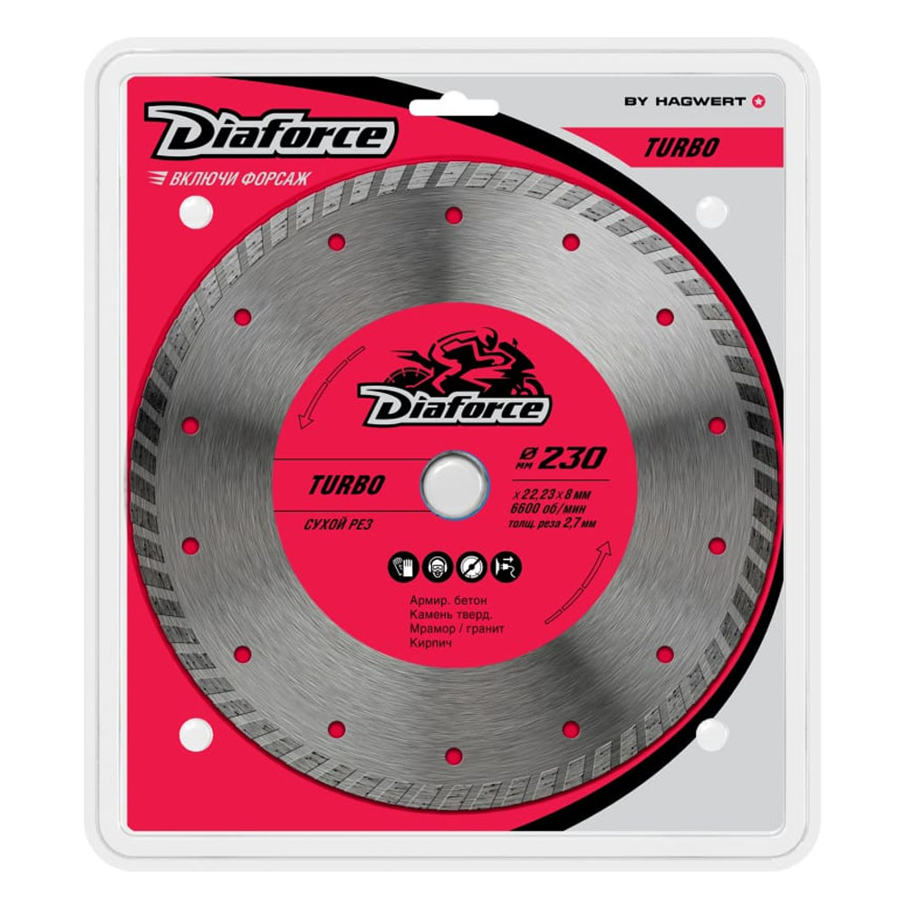 Круг отрезной алмазный 230 х 22 сегм. сухая резка турбо HAGWERT
