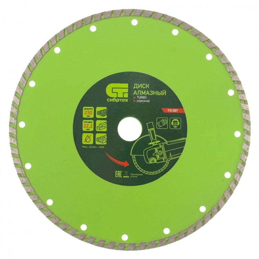 Круг отрезной алмазный 230 х 22 сегм. сухая резка турбо СИБРТЕХ